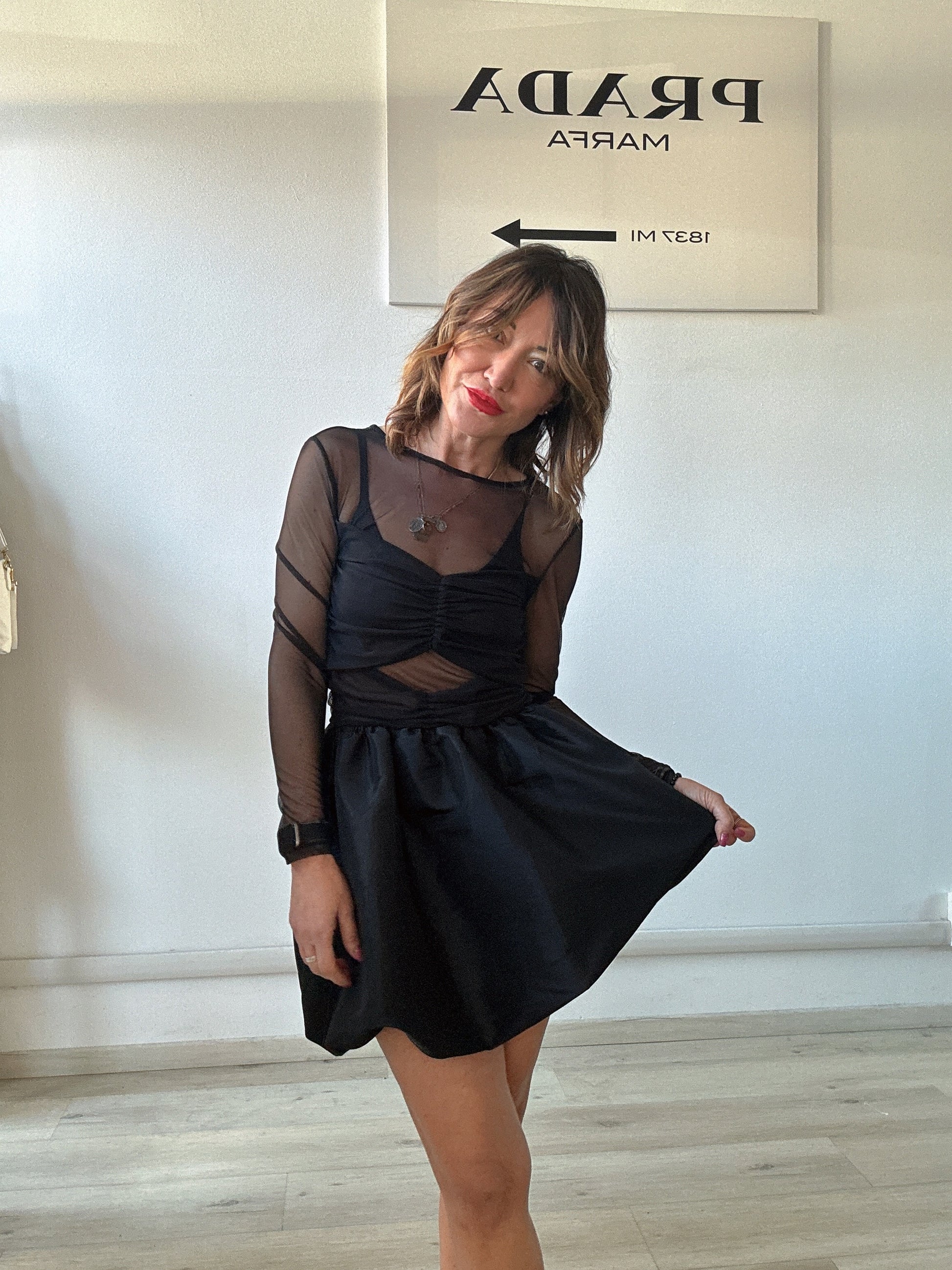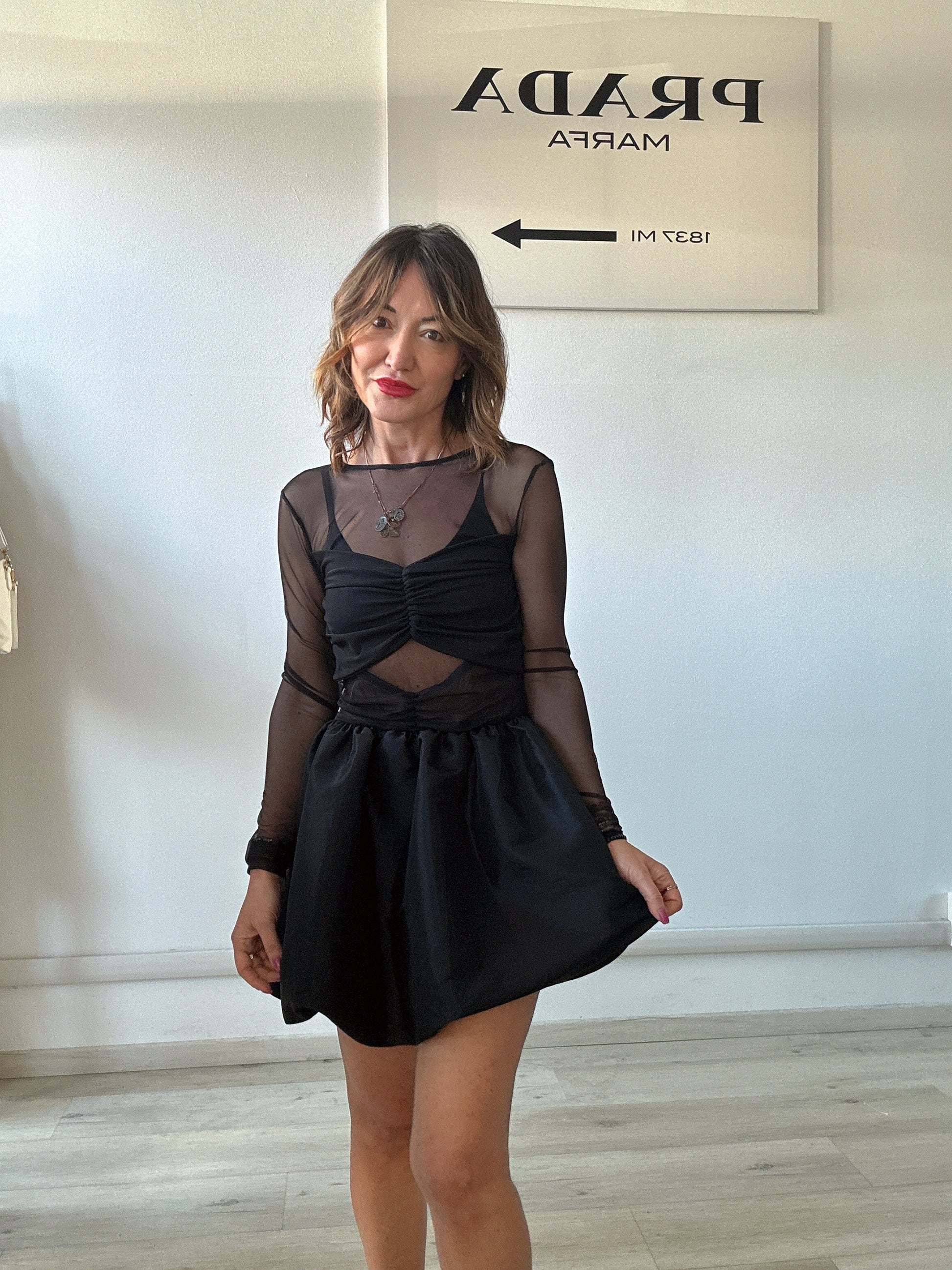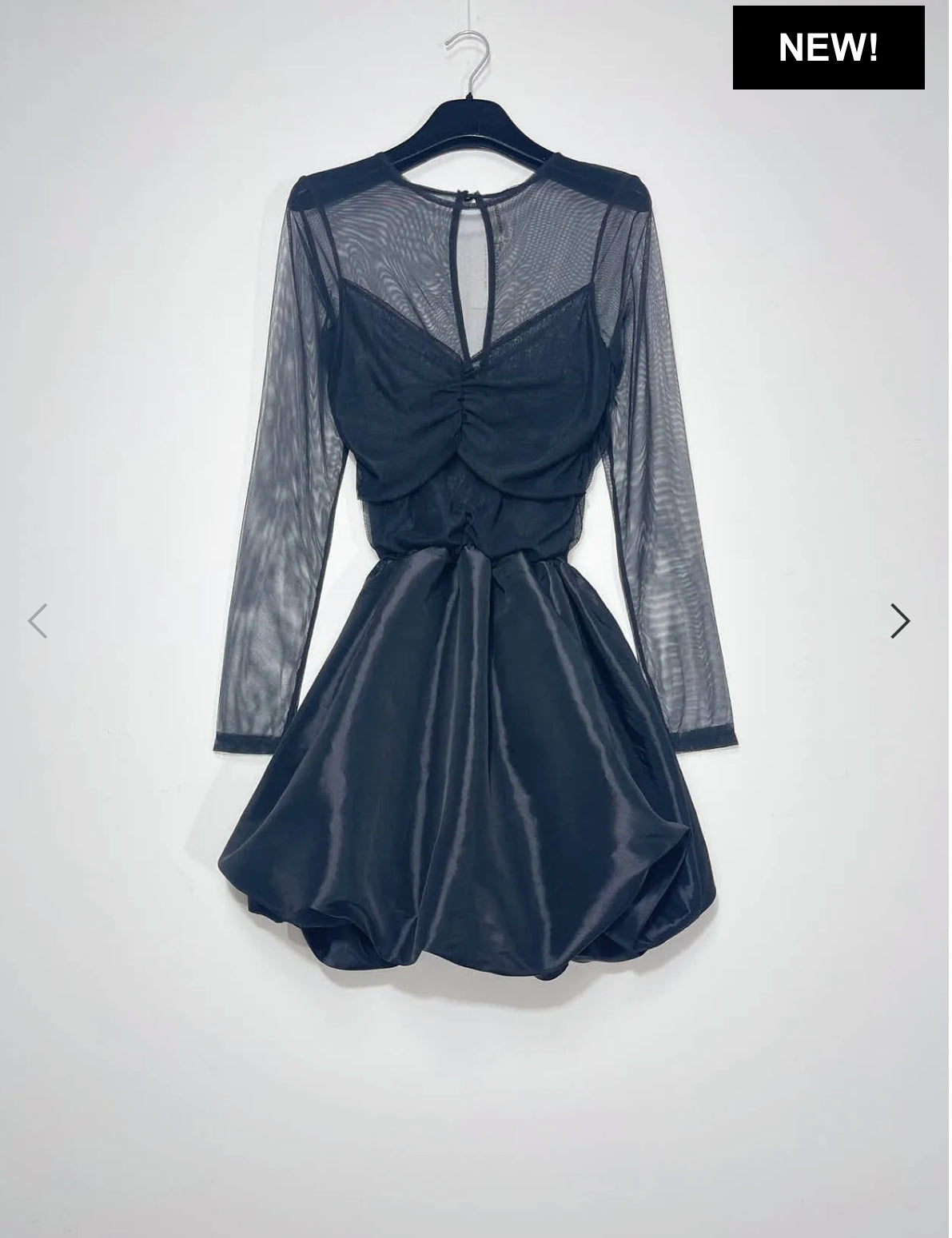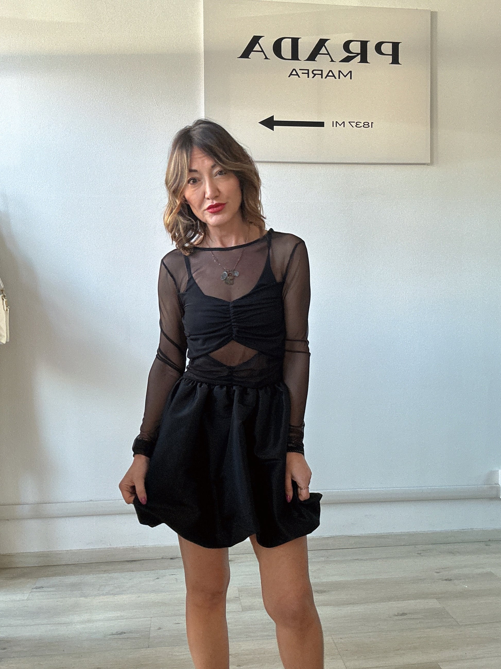 Abito in tulle semi trasparente con gonna in taffeta a palloncino