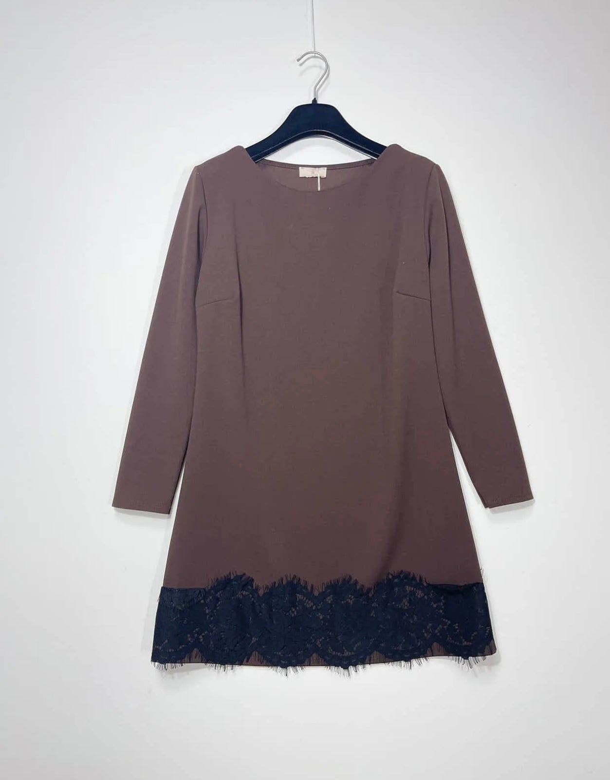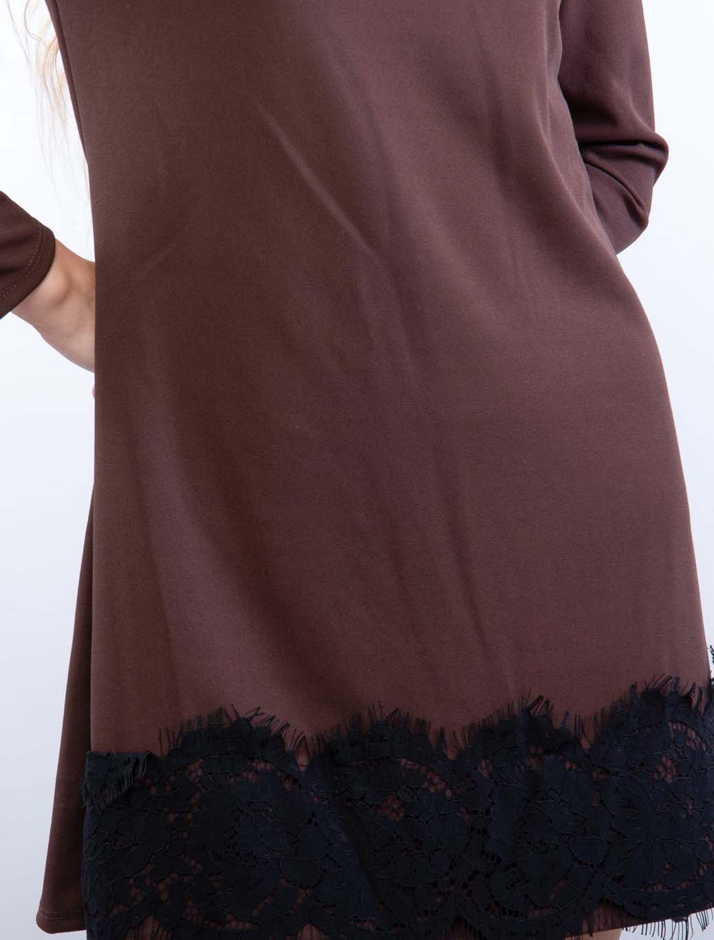 Abito a tunichetta con profilo in pizzo e scollo tondo
