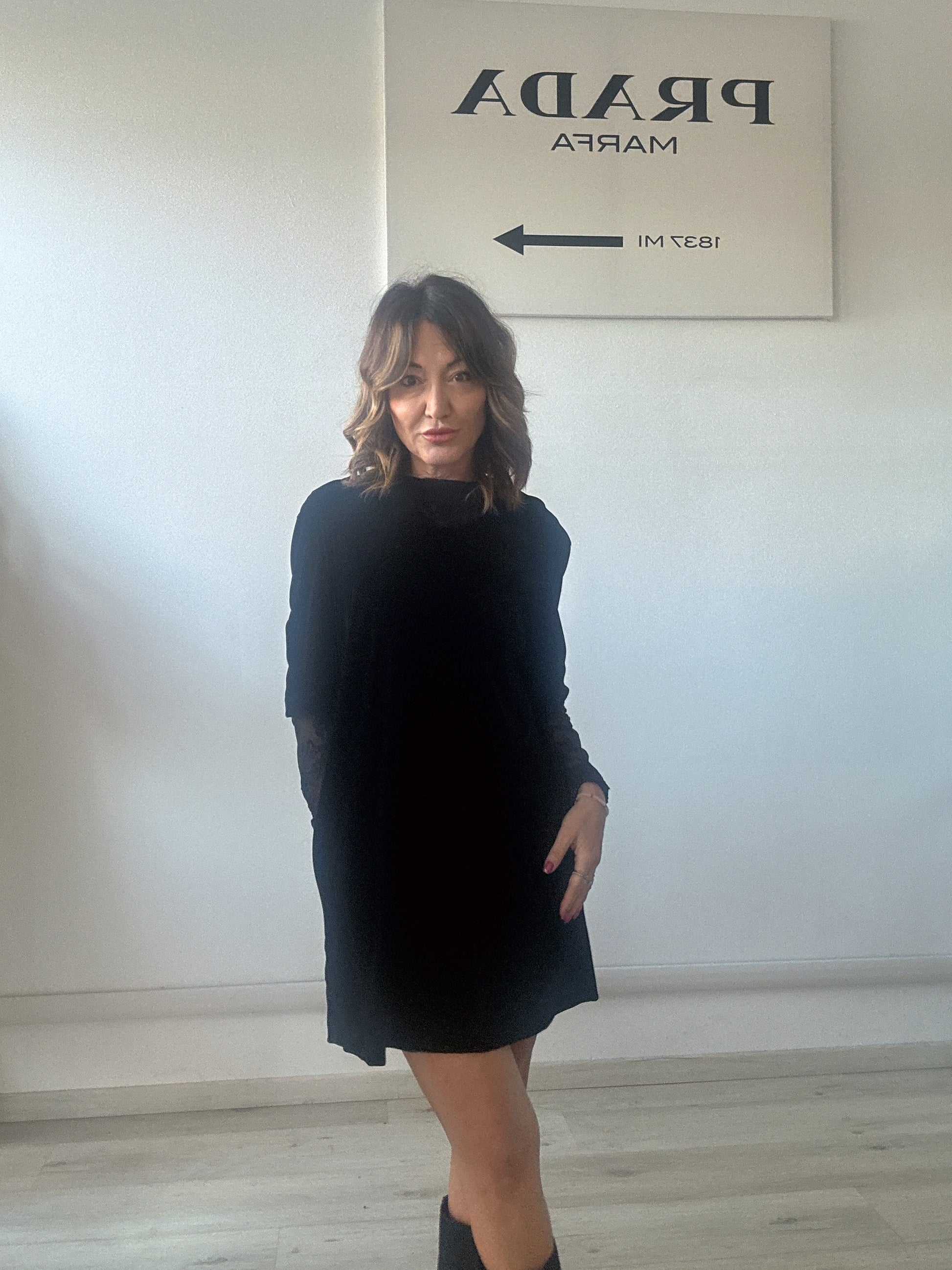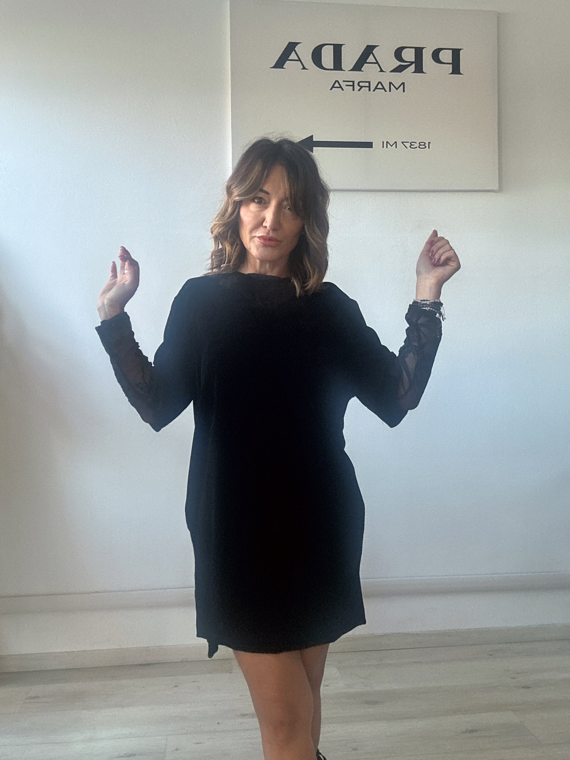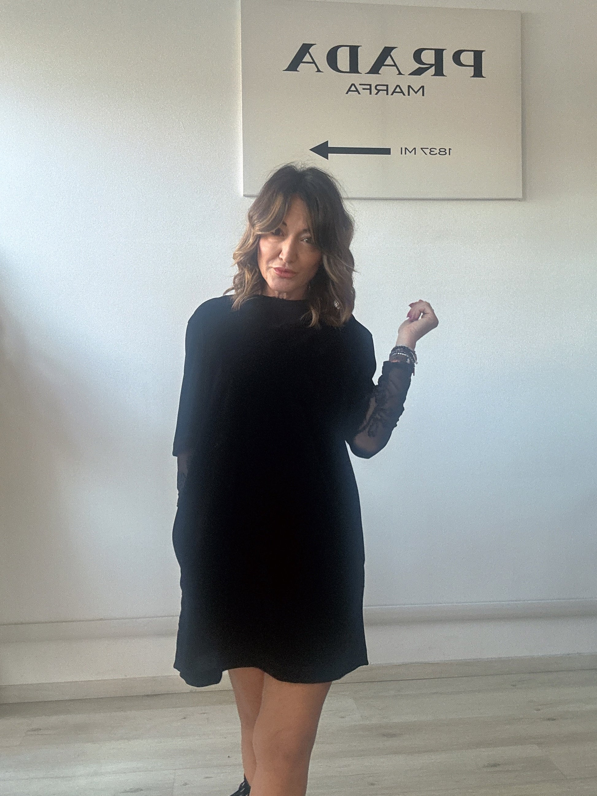 Abito a tunichetta a mezza manica con tasche laterali e bottone posteriore in chiusura