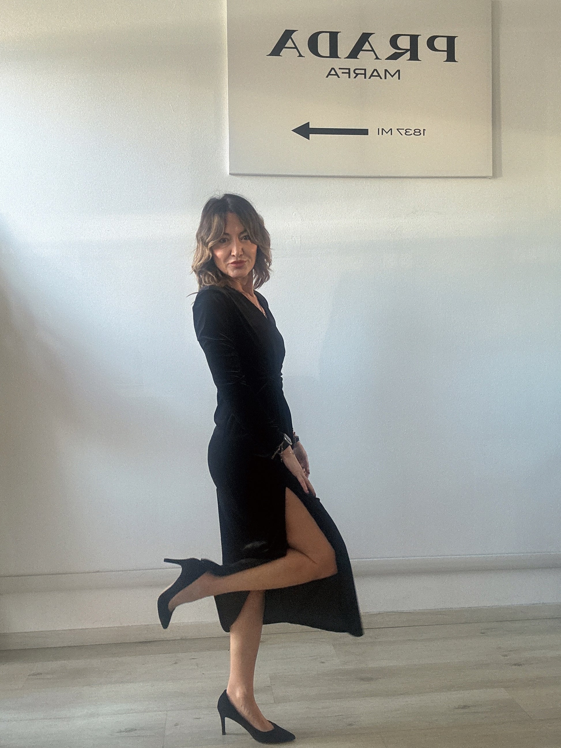 Abito in ciniglia con drappeggio anteriore e spacco laterale