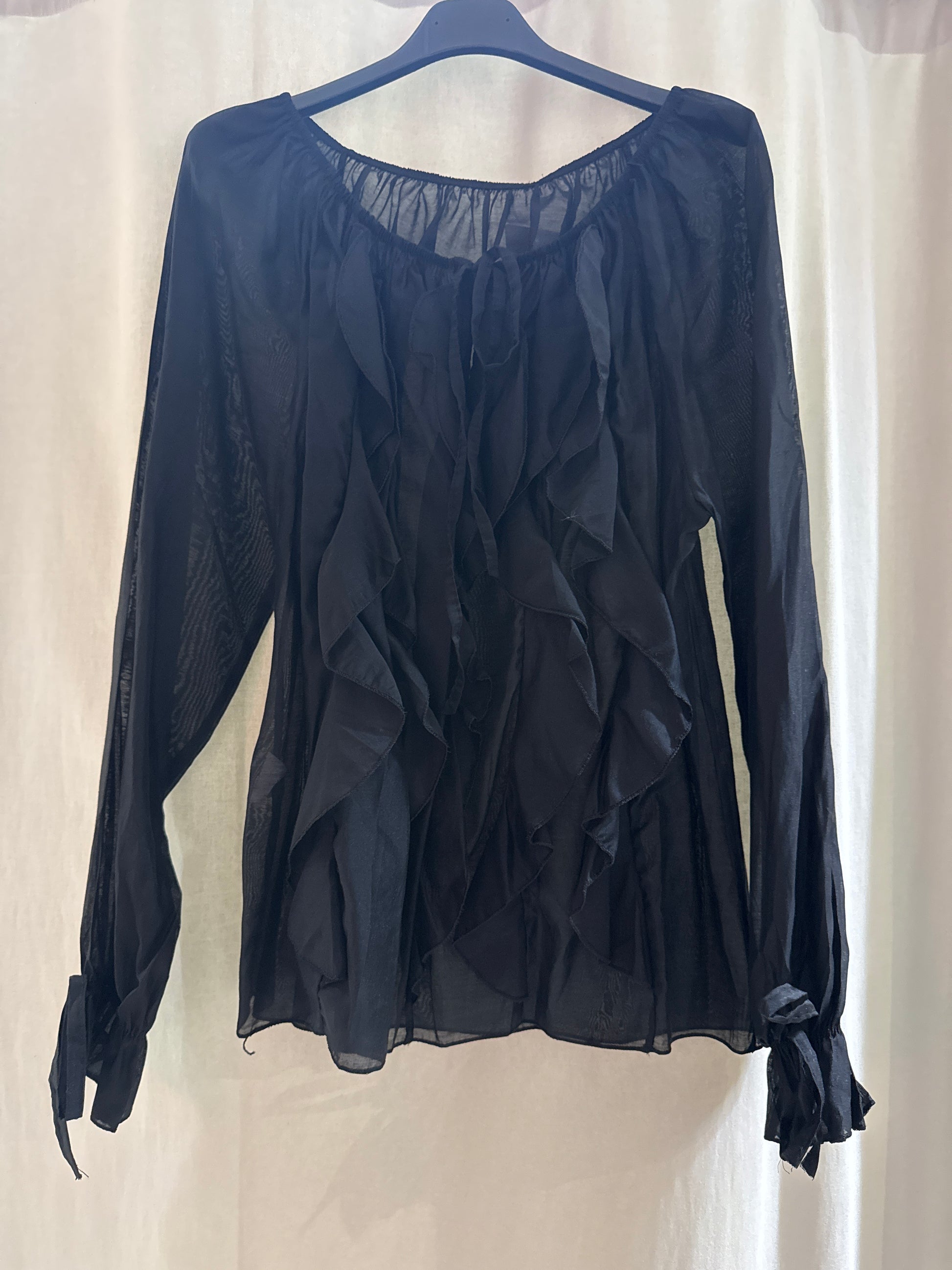 Blusa semitrasparente con rouches anteriori ed elastico al collo e ai polsi