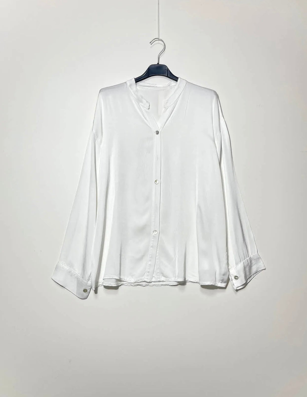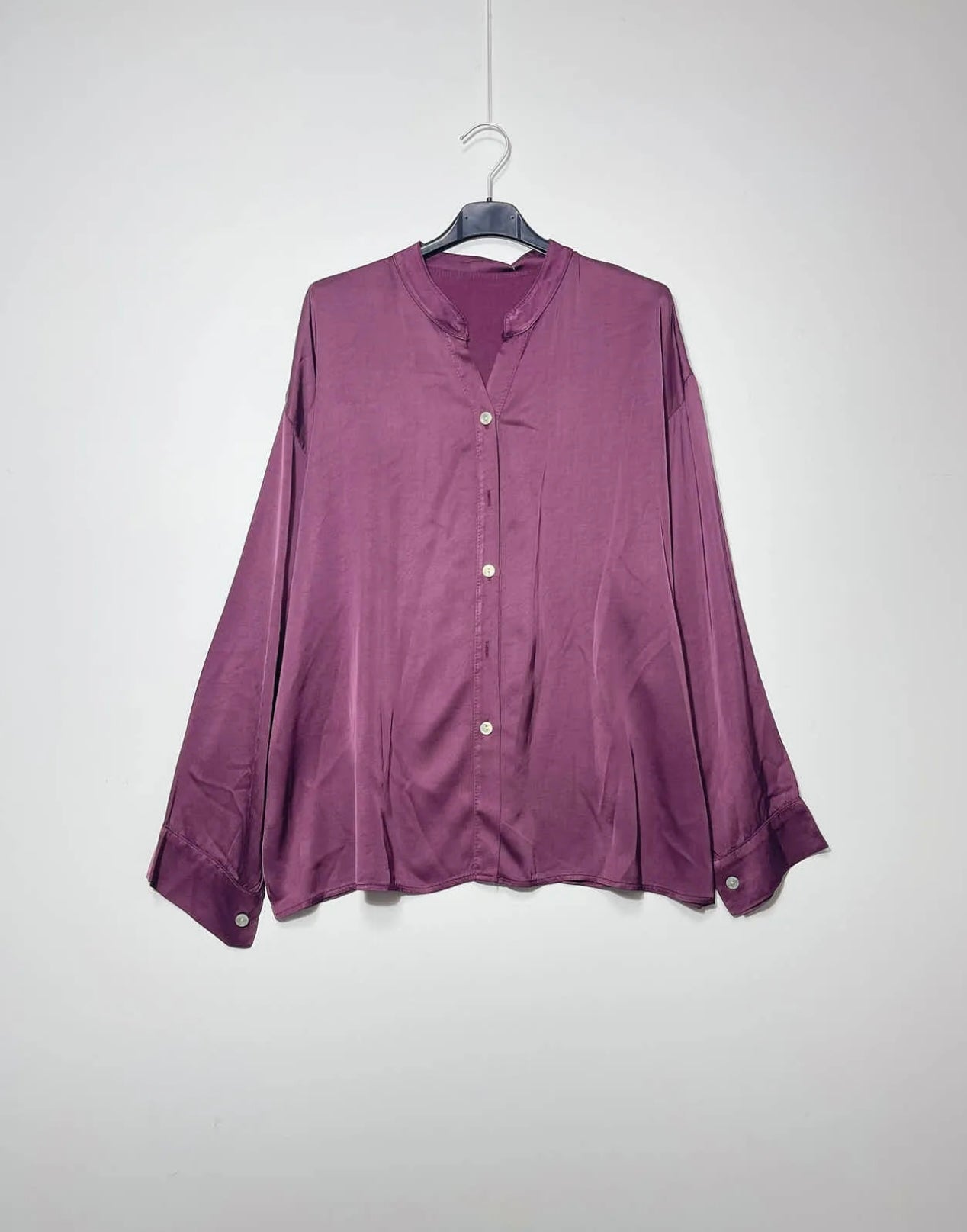 Camicia over in satin di viscosa e seta con collo alla coreana