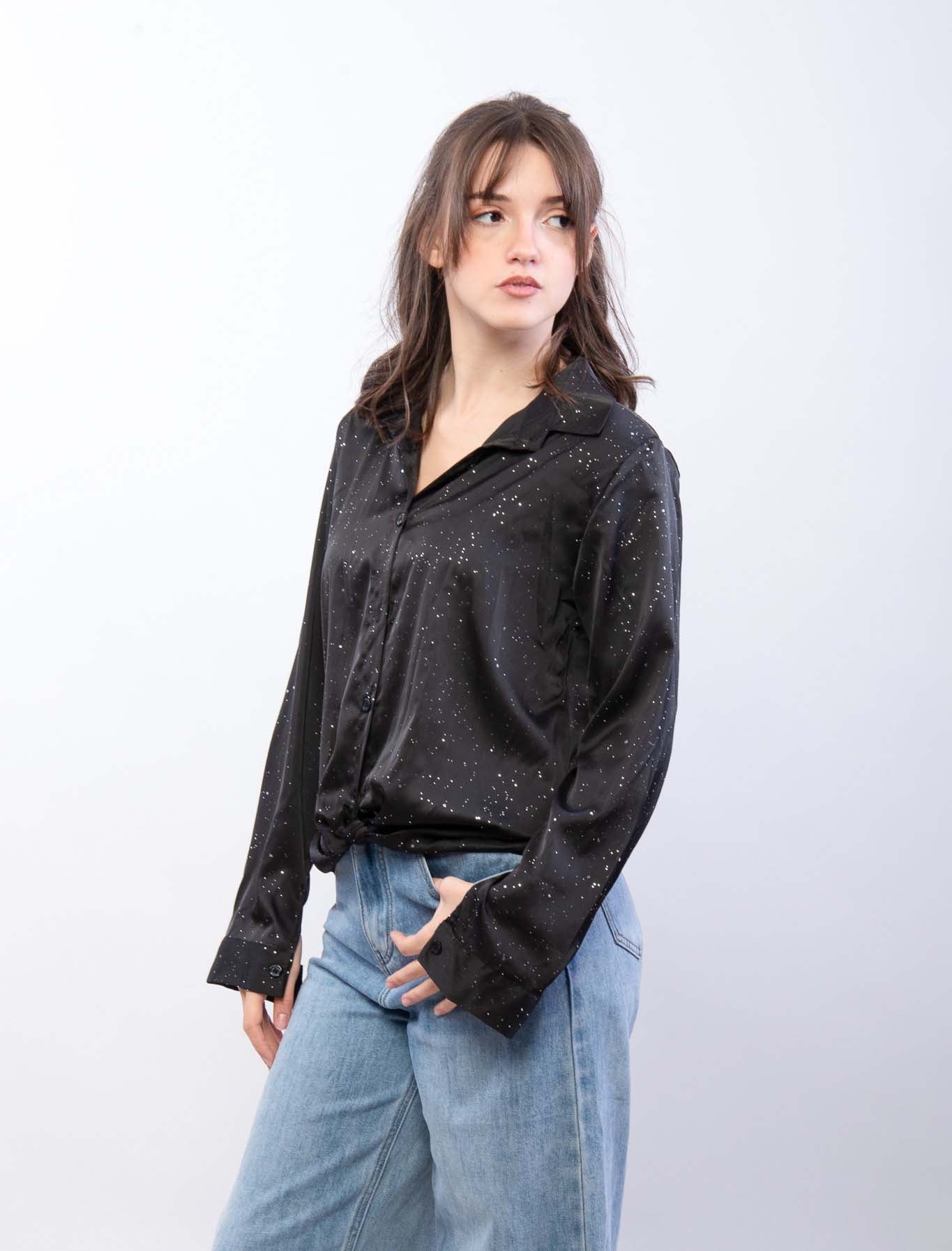 Camicia in satin di raso con glitter argentati