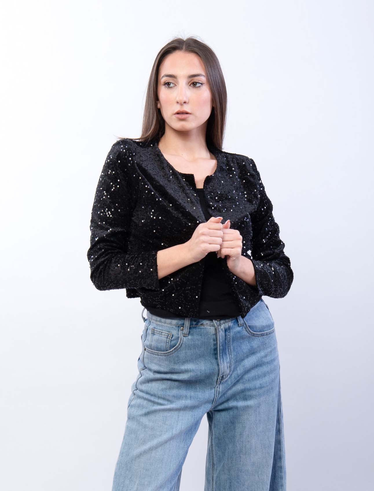 Coprispalle in ciniglia e pailettes con spalle imbottite e fodera in viscosa