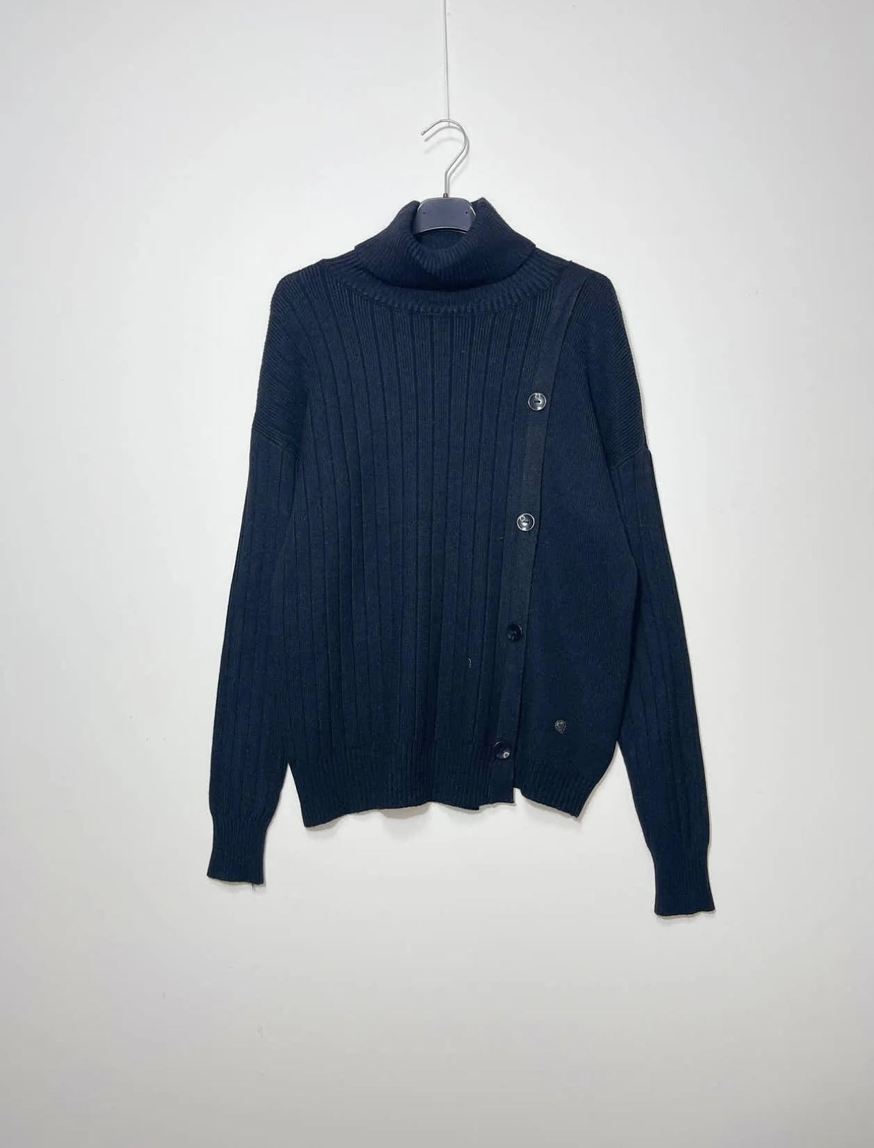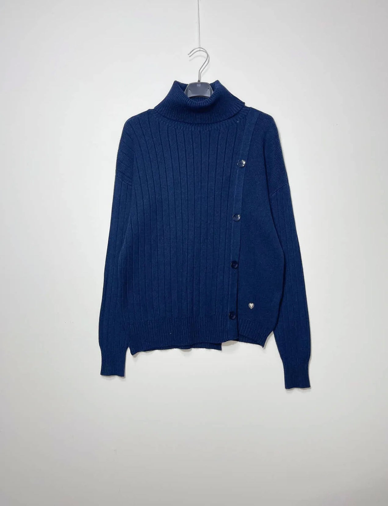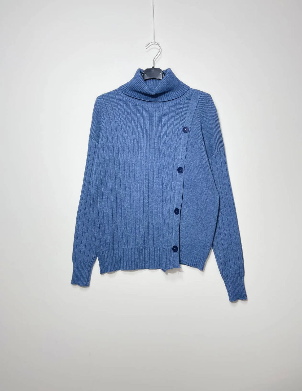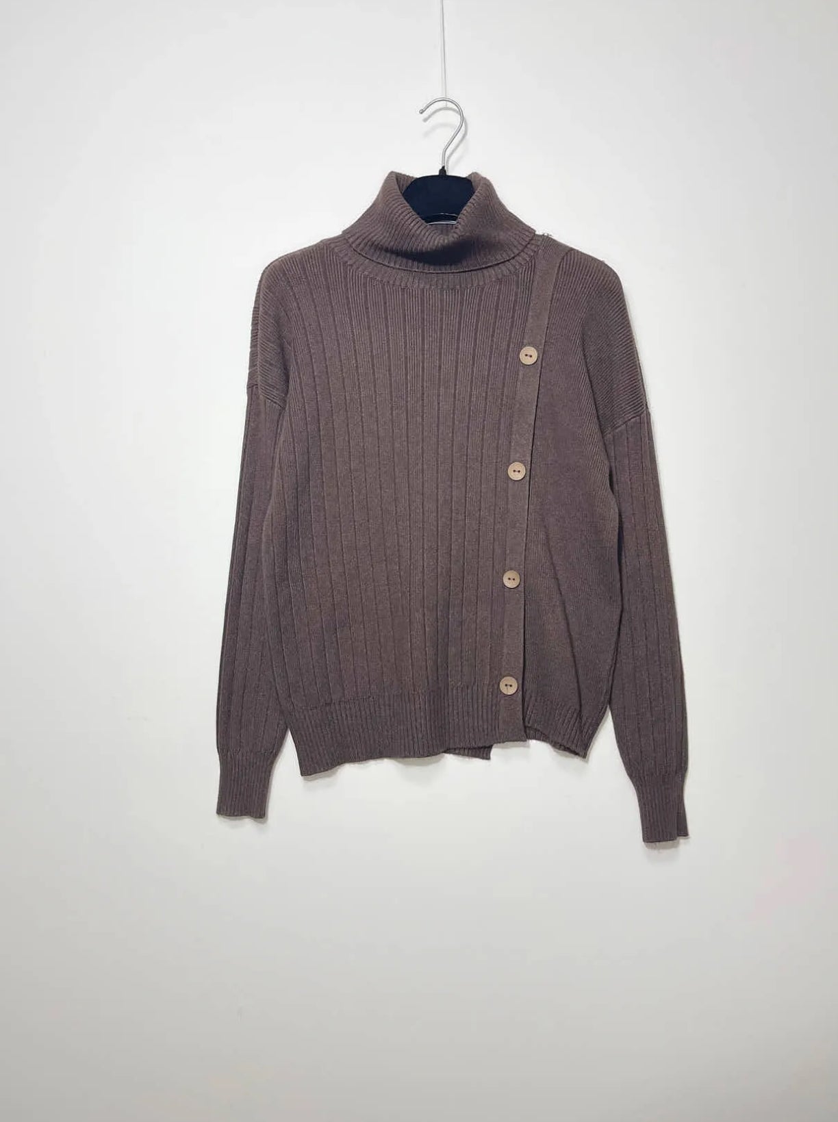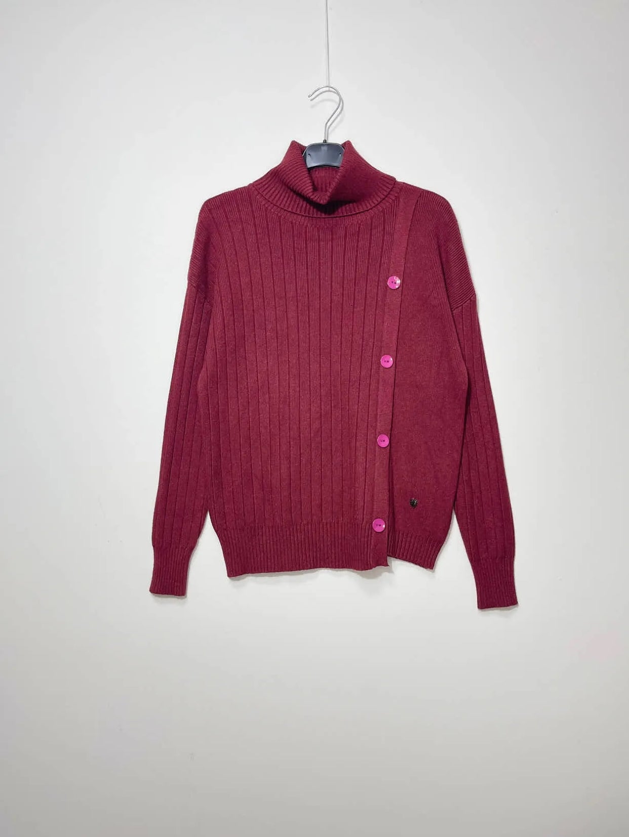 Maglia dolcevita in viscosa con finti bottoni anteriori e coste