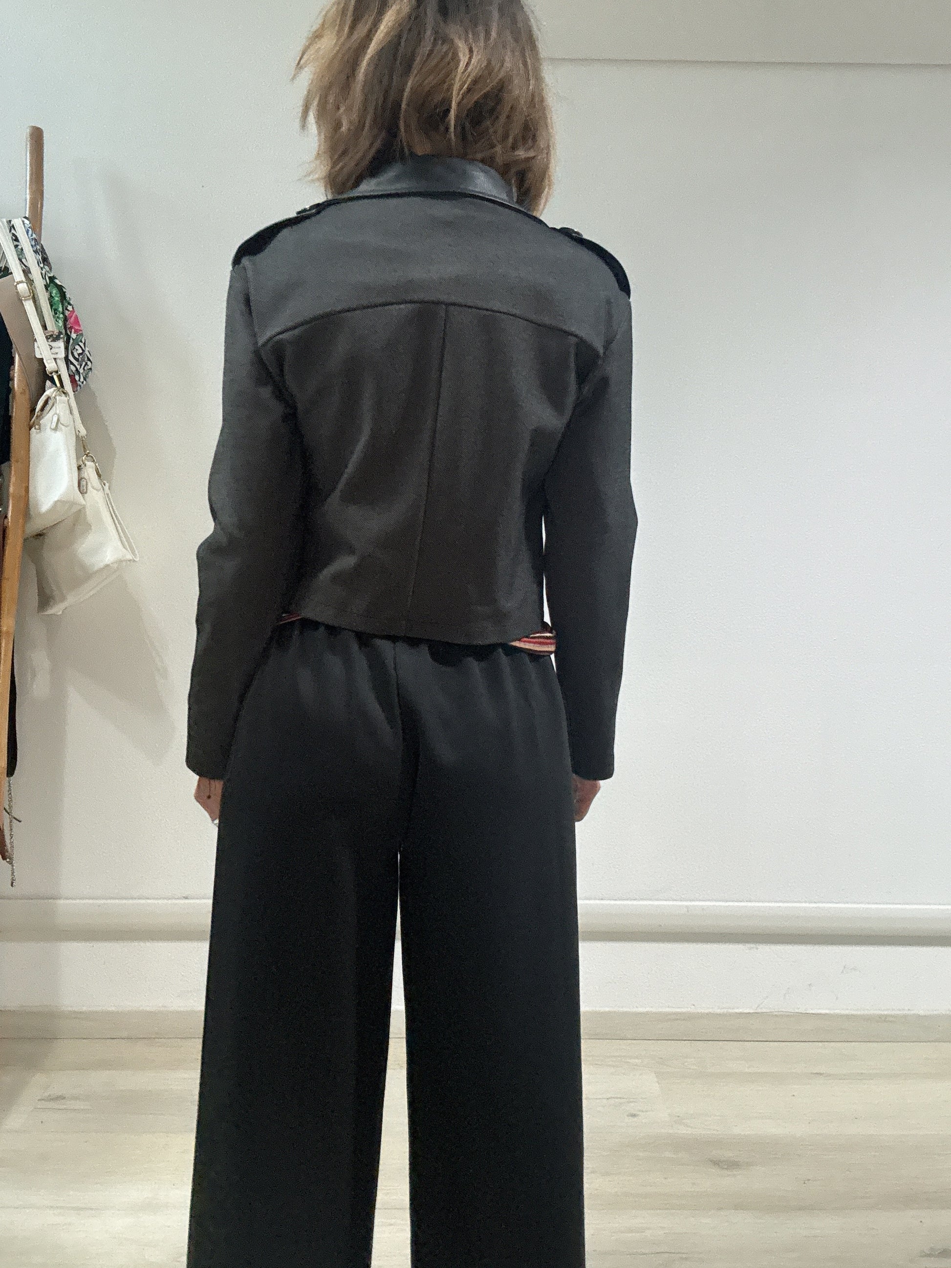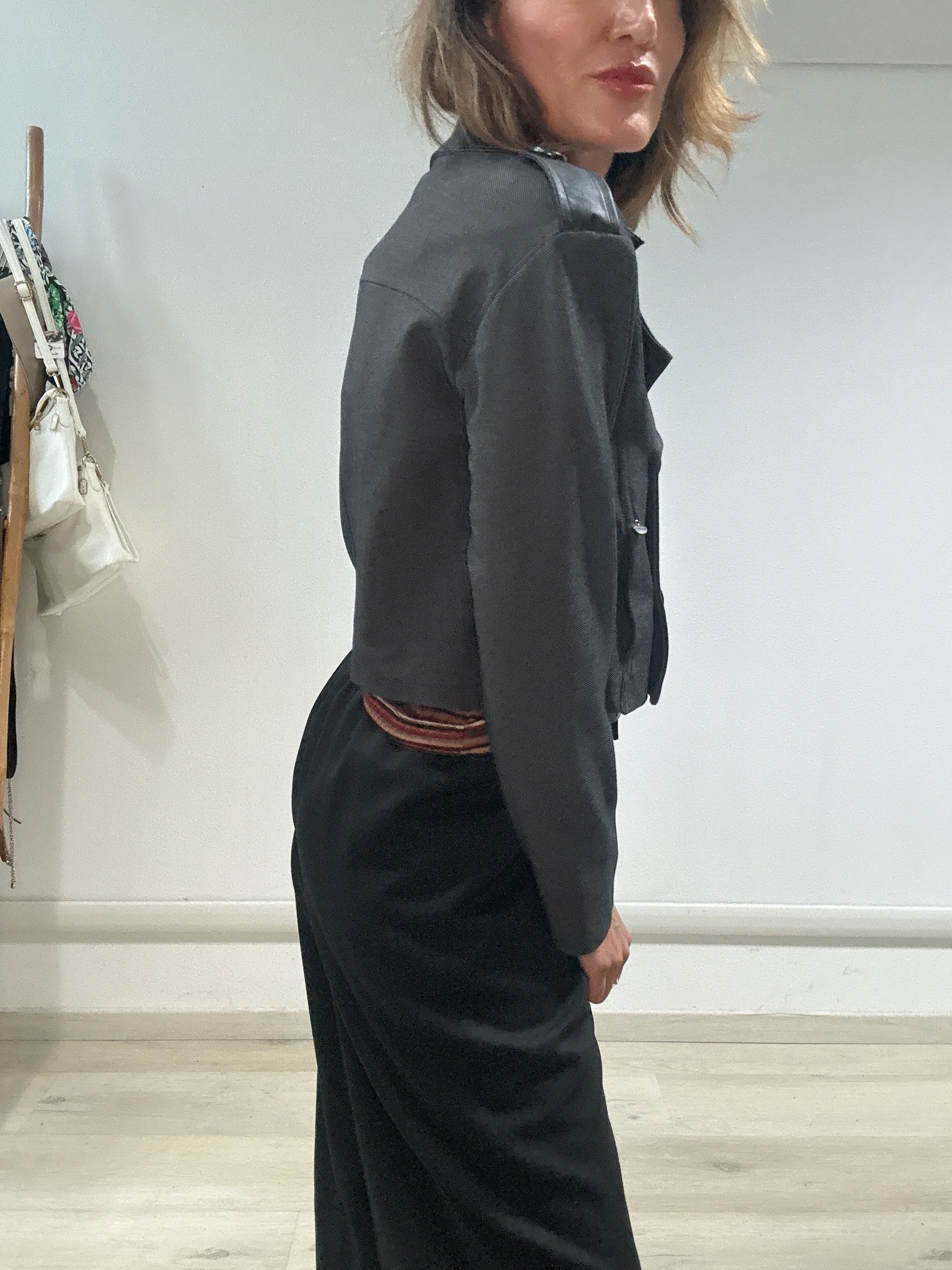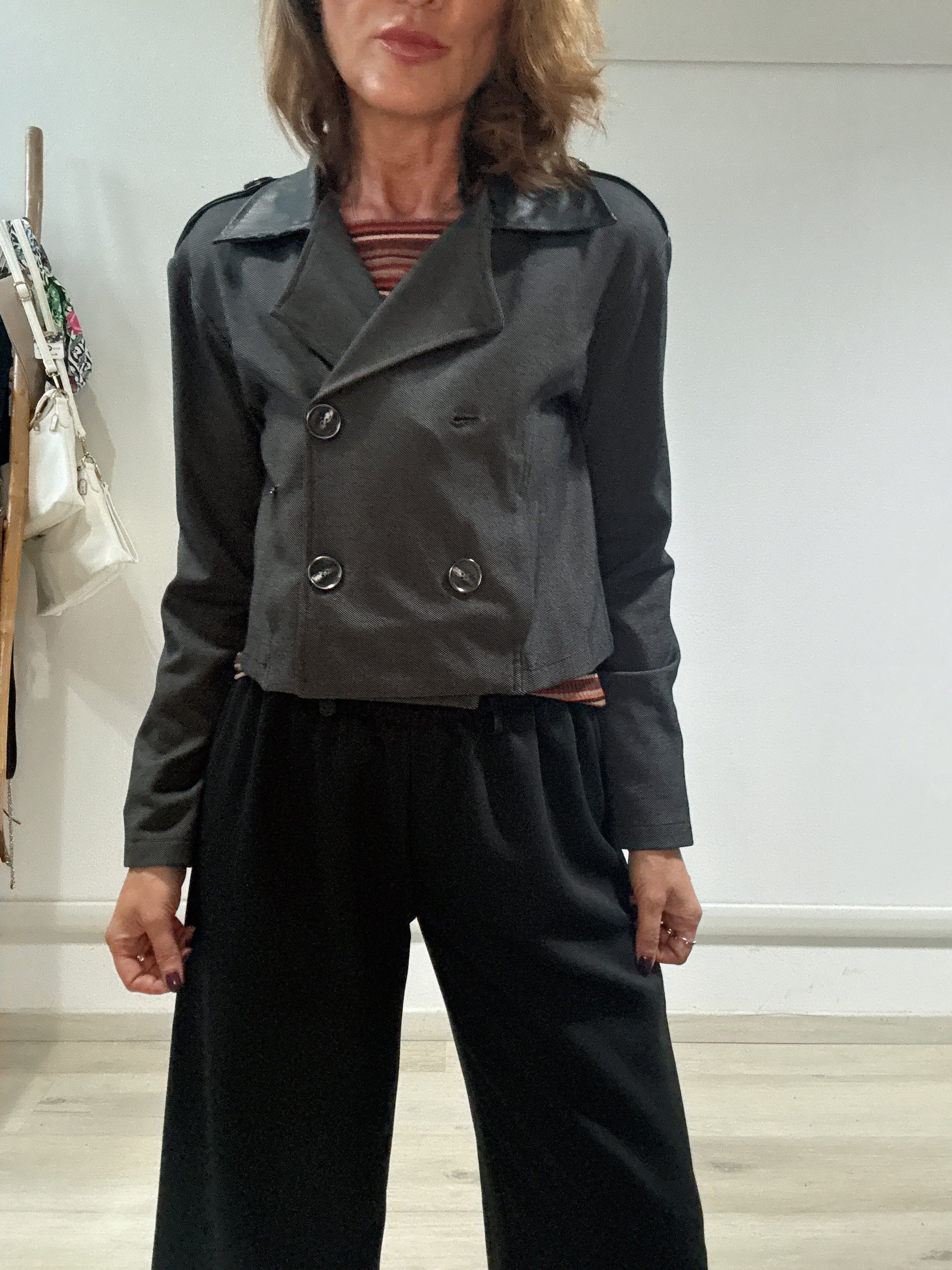 Giacca crop a coste laterali con inserti in ecopelle, sfoderata, stretch