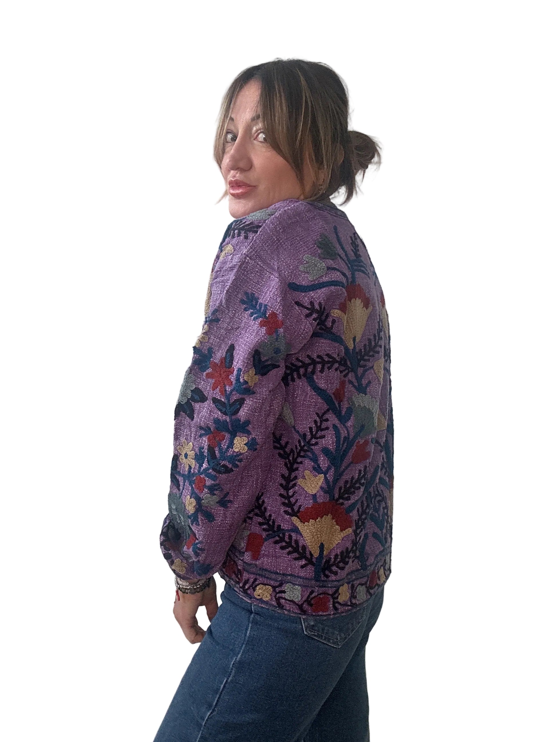Giacca in cotone con ricami e scollo alla coreana