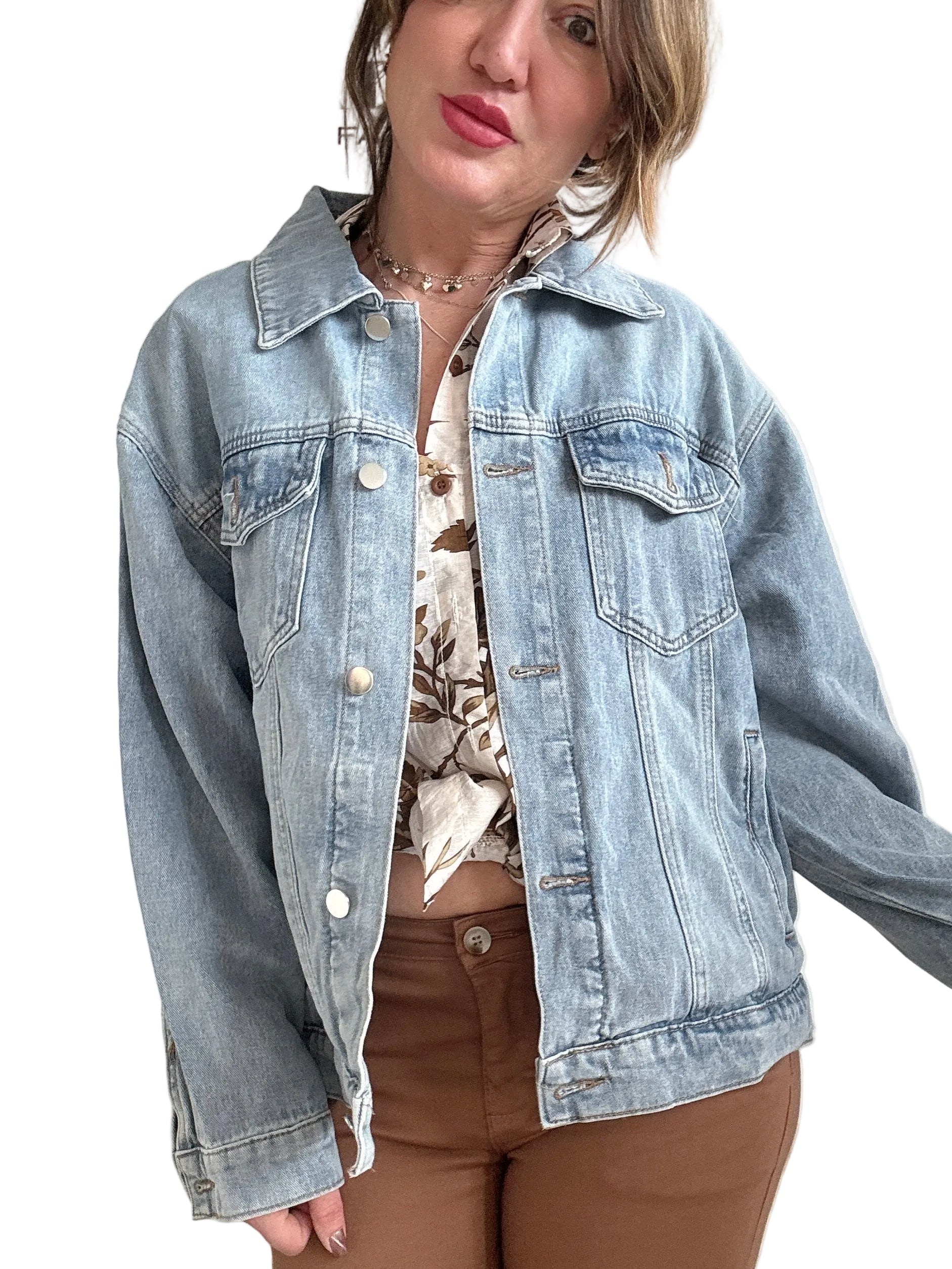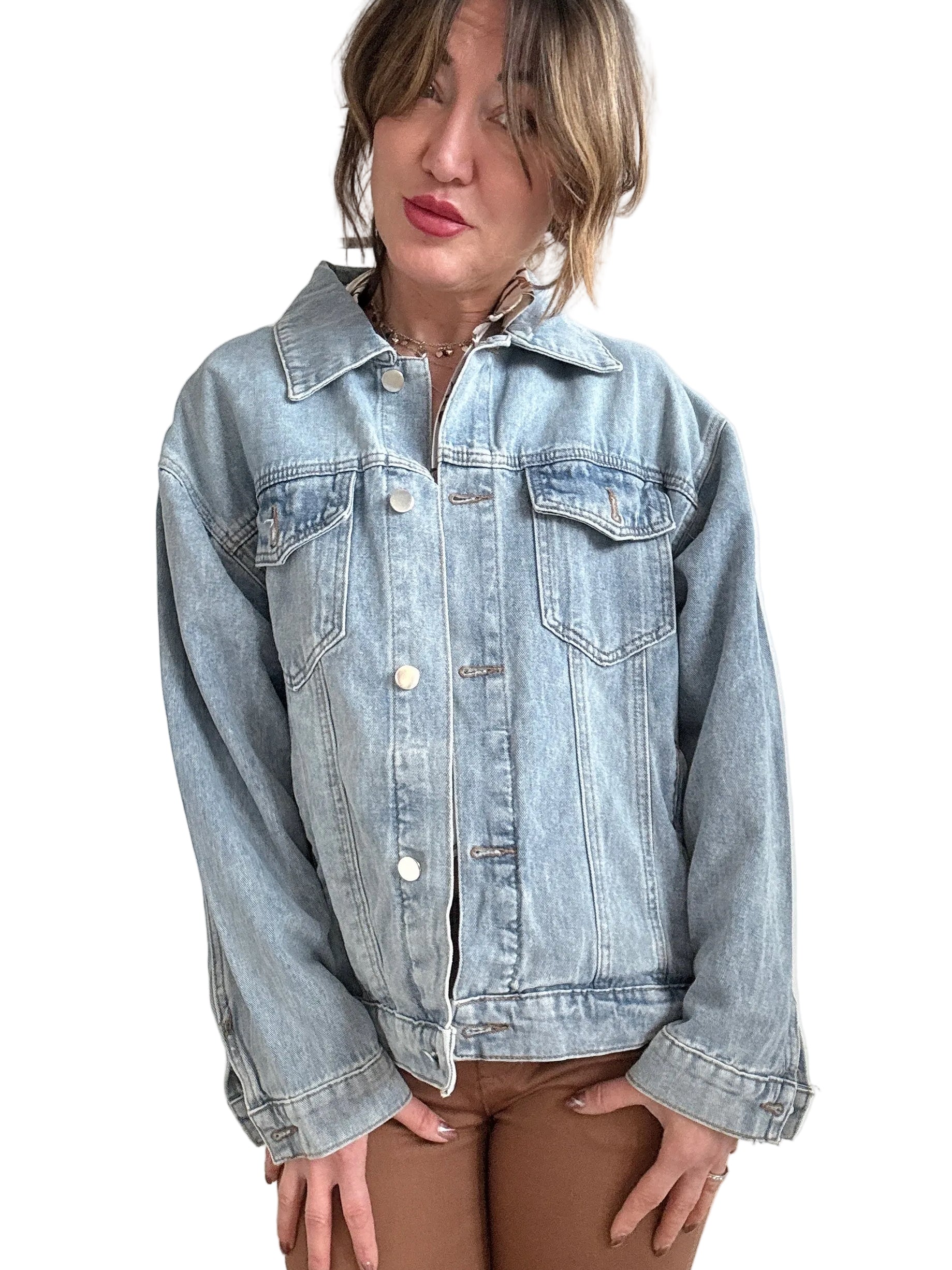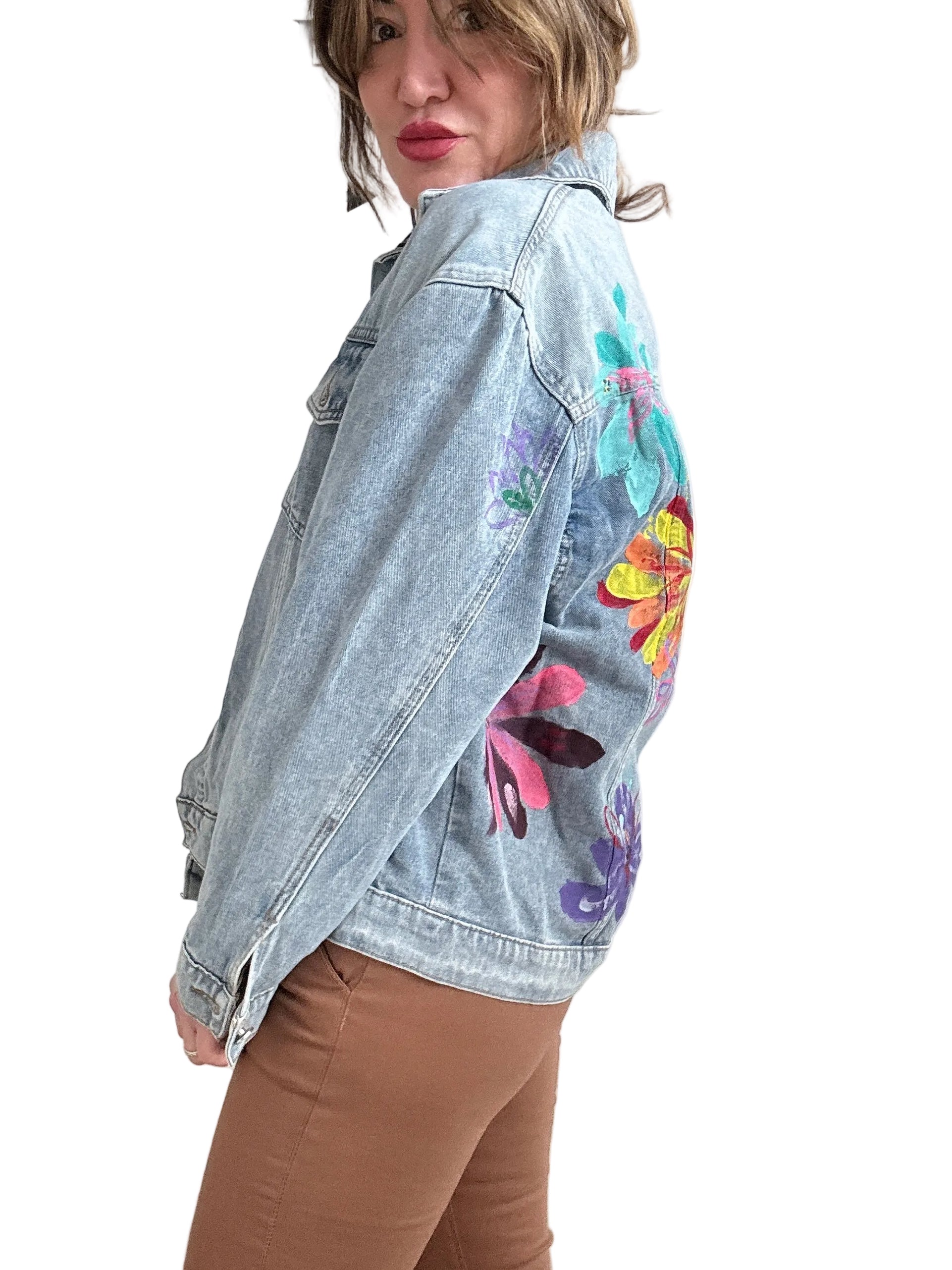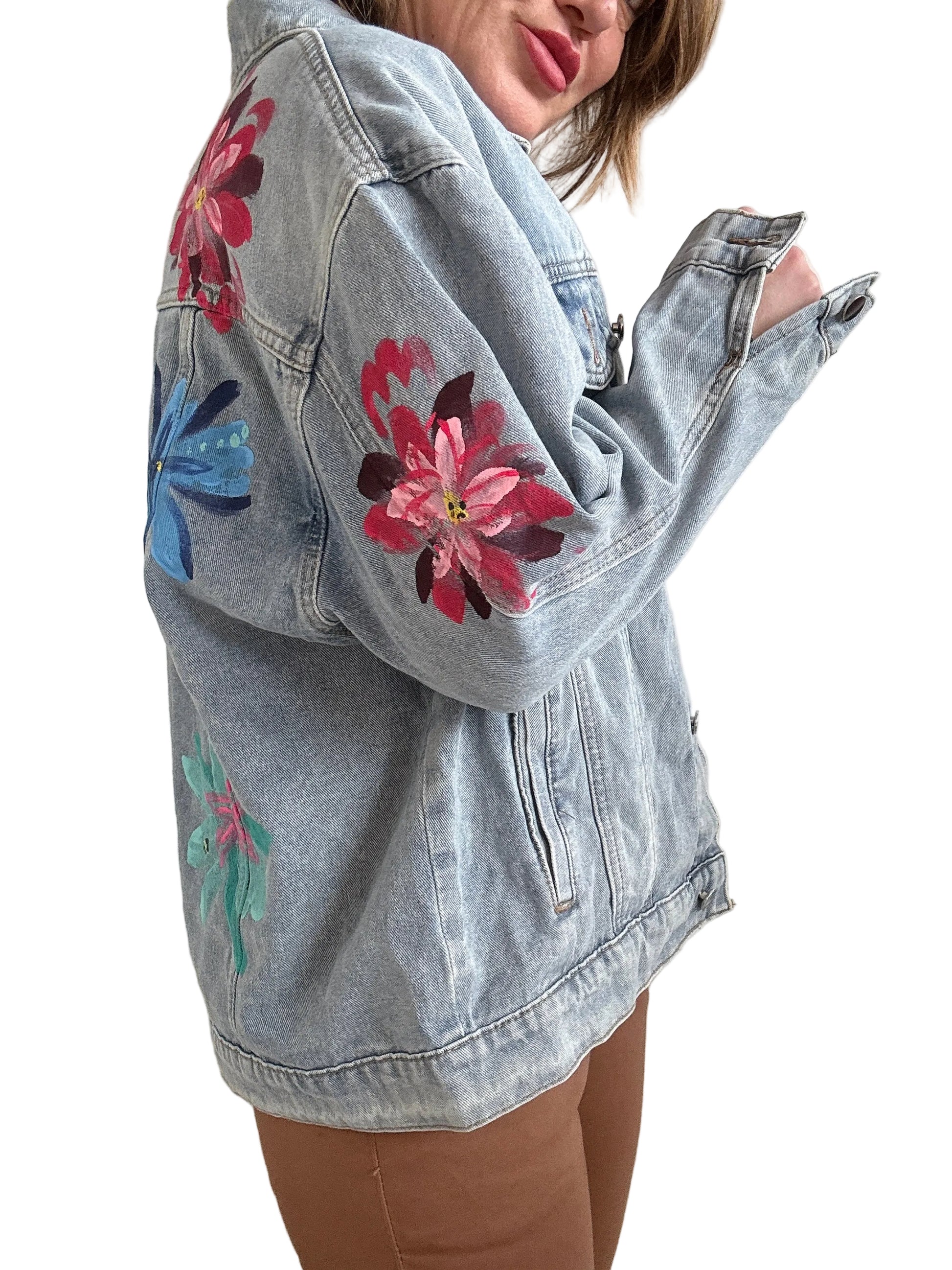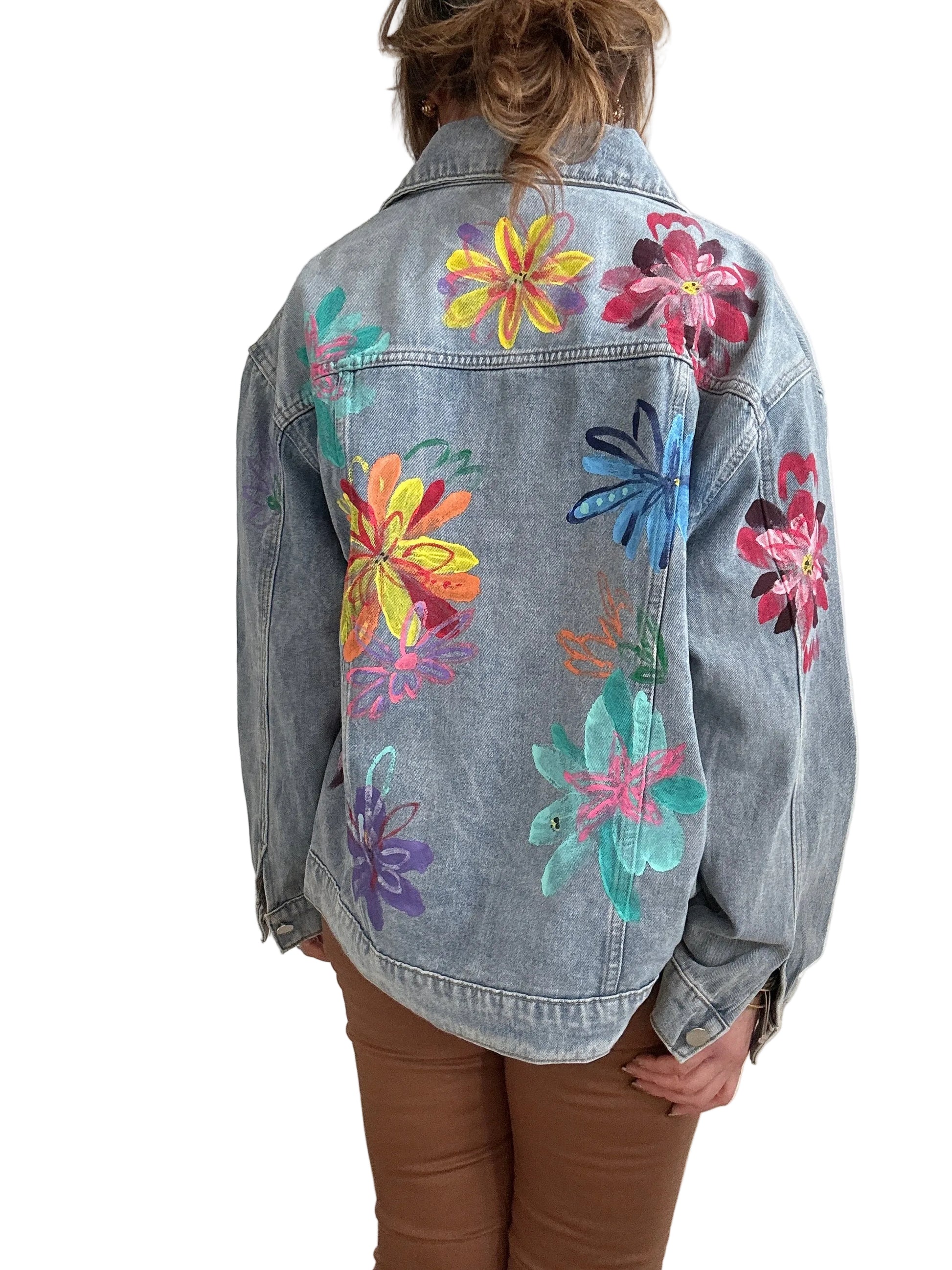 Giacca over in jeans decorata a mano