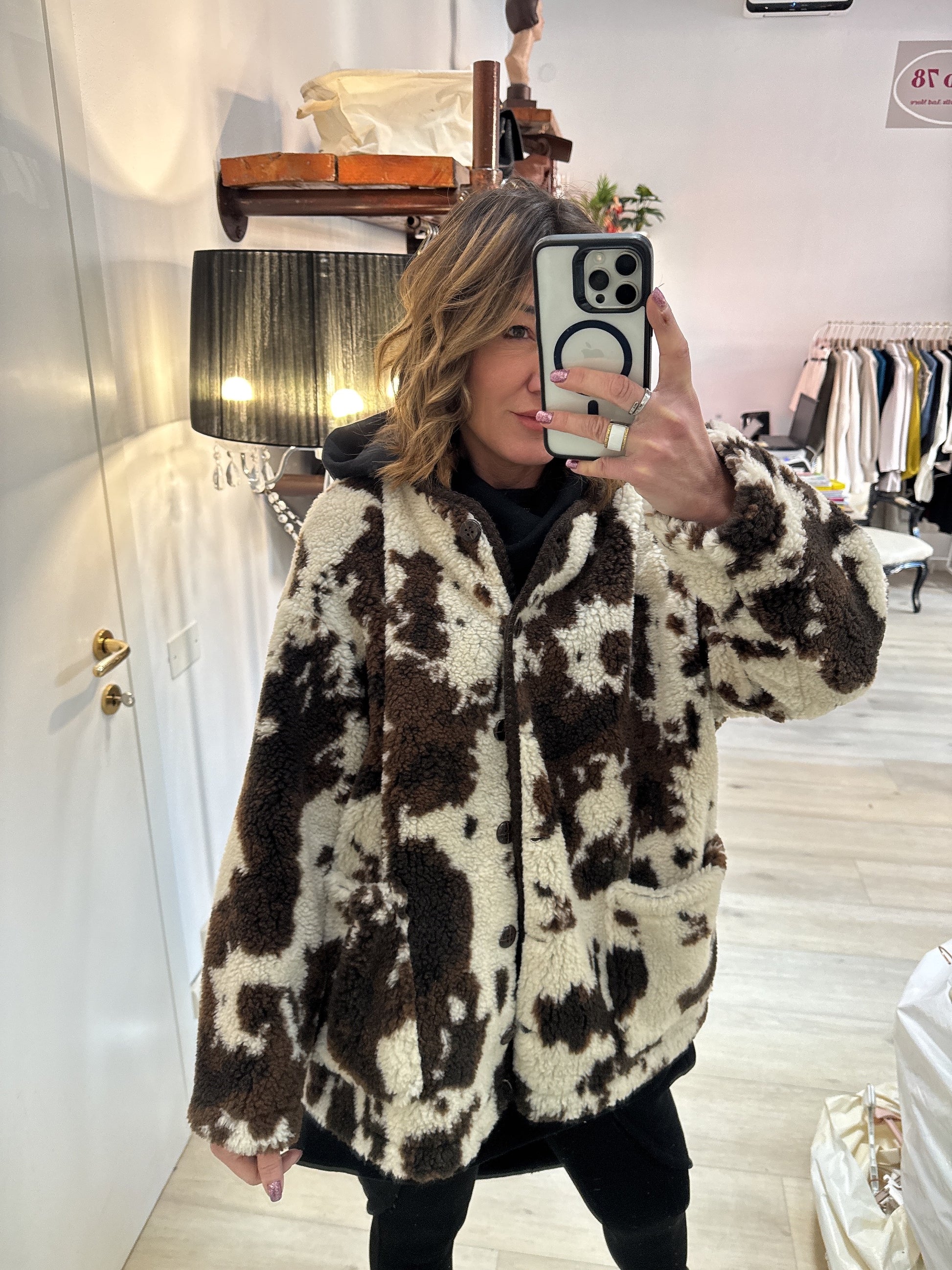 Giacca over Teddy con tasche frontali e chiusura a un bottone