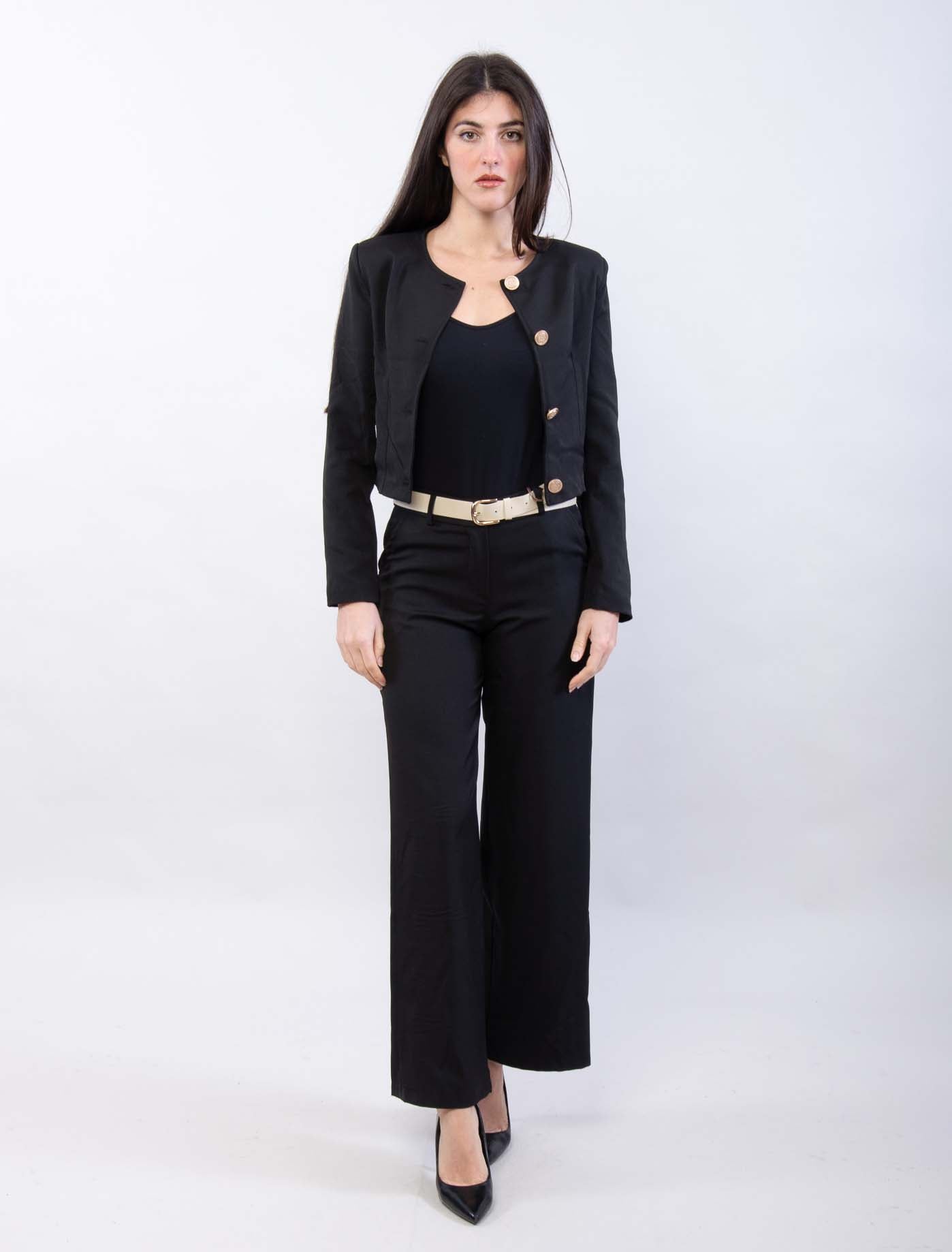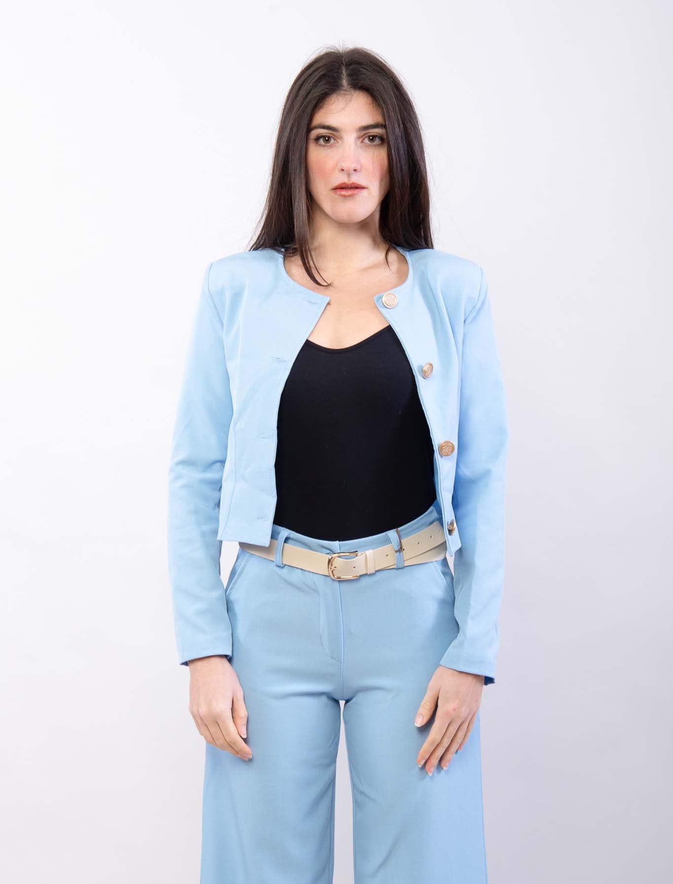 Giacchina cropped con scollo Chanel e bottoni dorati