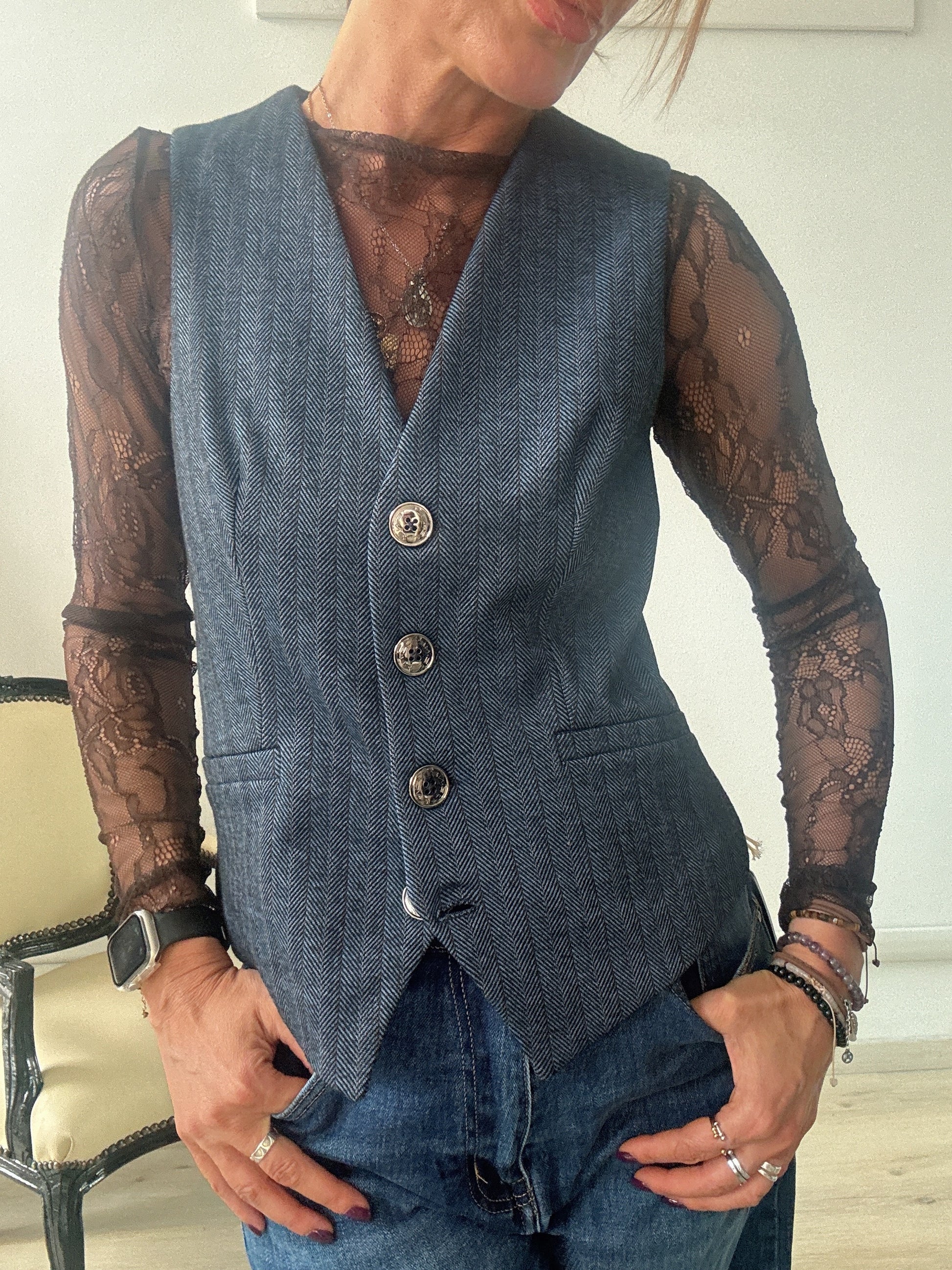 Gilet spigato, foderato con chiusura a 4 bottoni