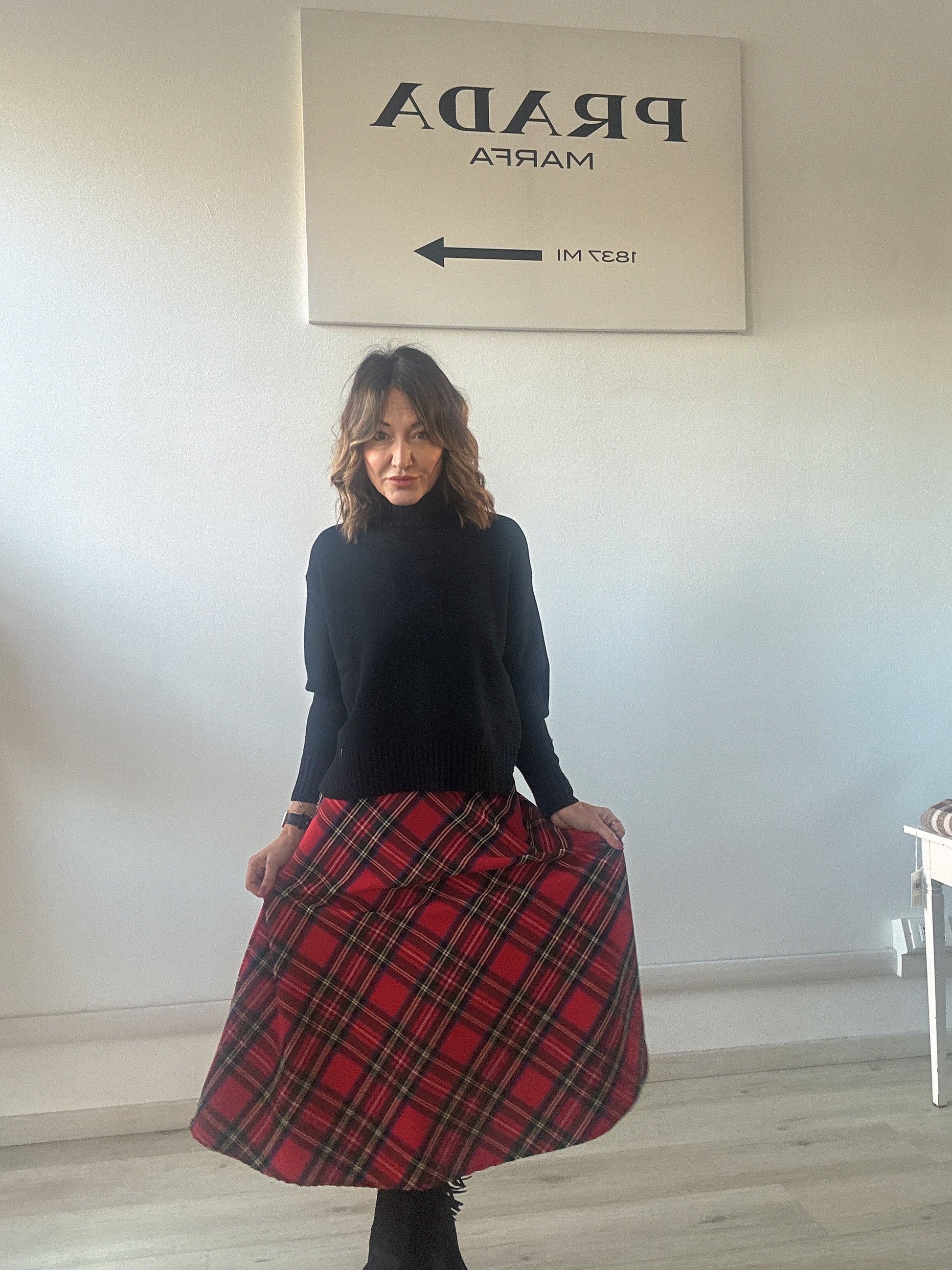 Gonna a ruota sfoderata con elastico in vita e cintura
