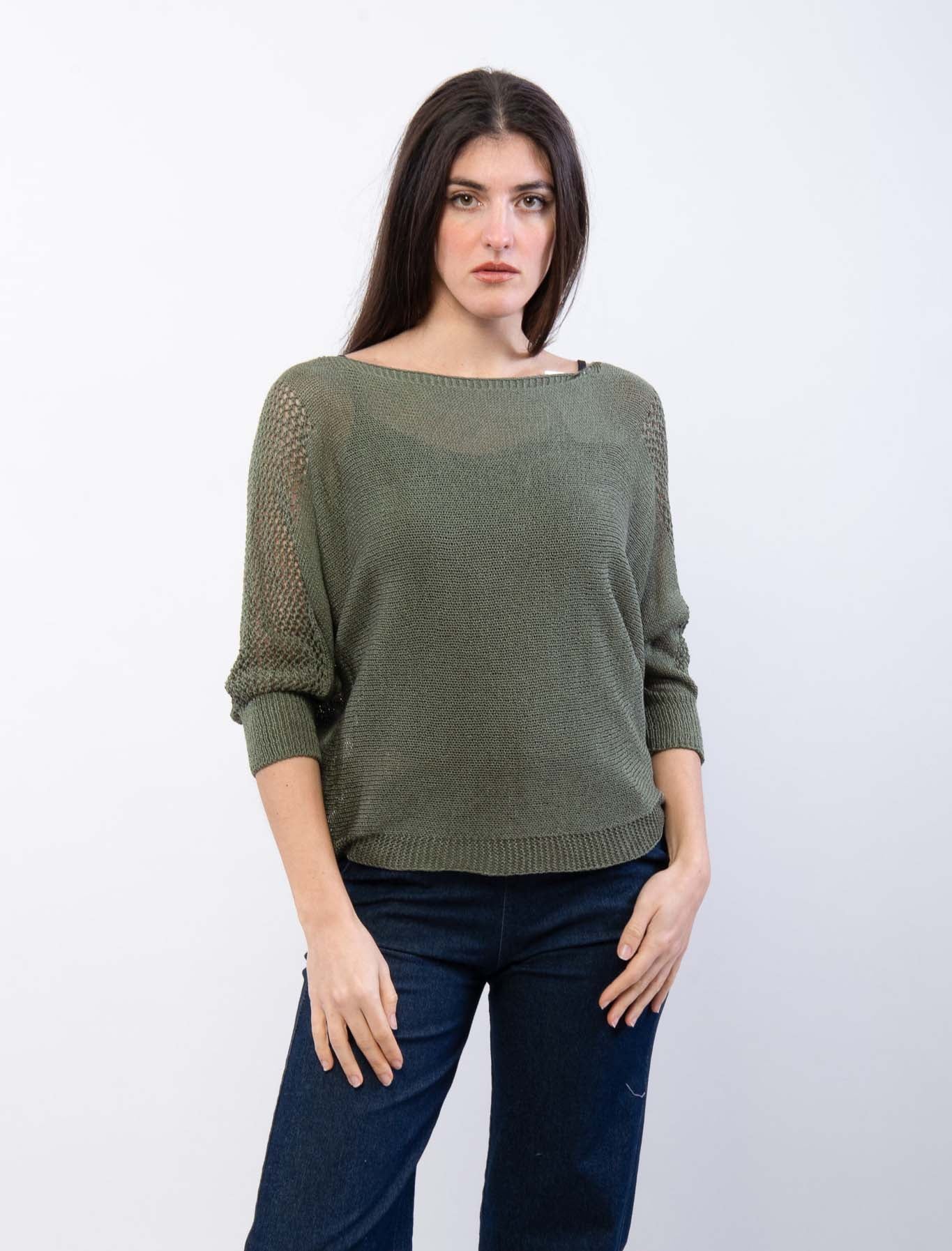 Maglia con maniche a tre quarti a rete e fiocco posteriore