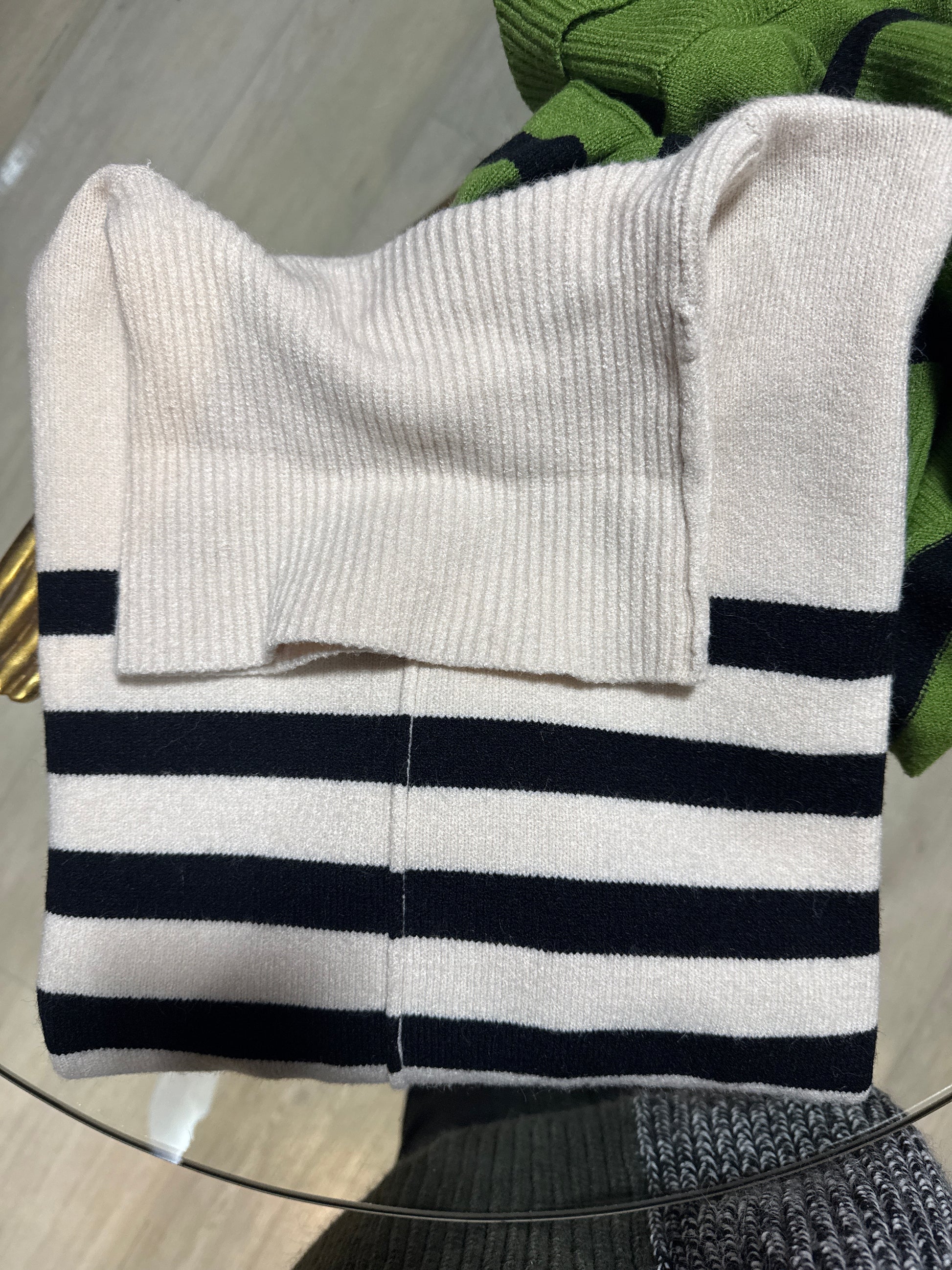 Maglia in viscosa a righe con collo a ciambella e spacchetto laterale