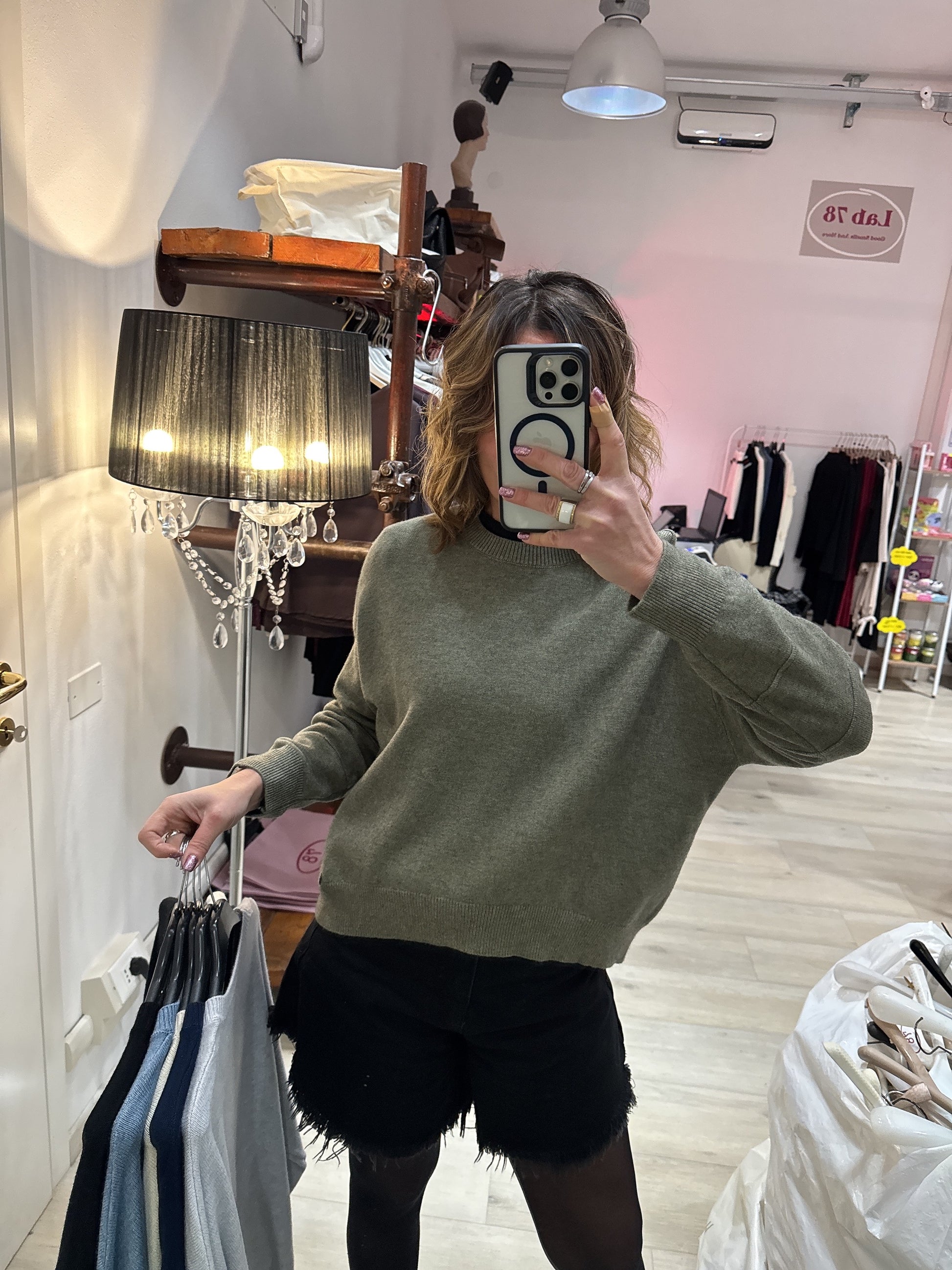 Maglia semplice in viscosa a scatoletta leggermente asimmetrica