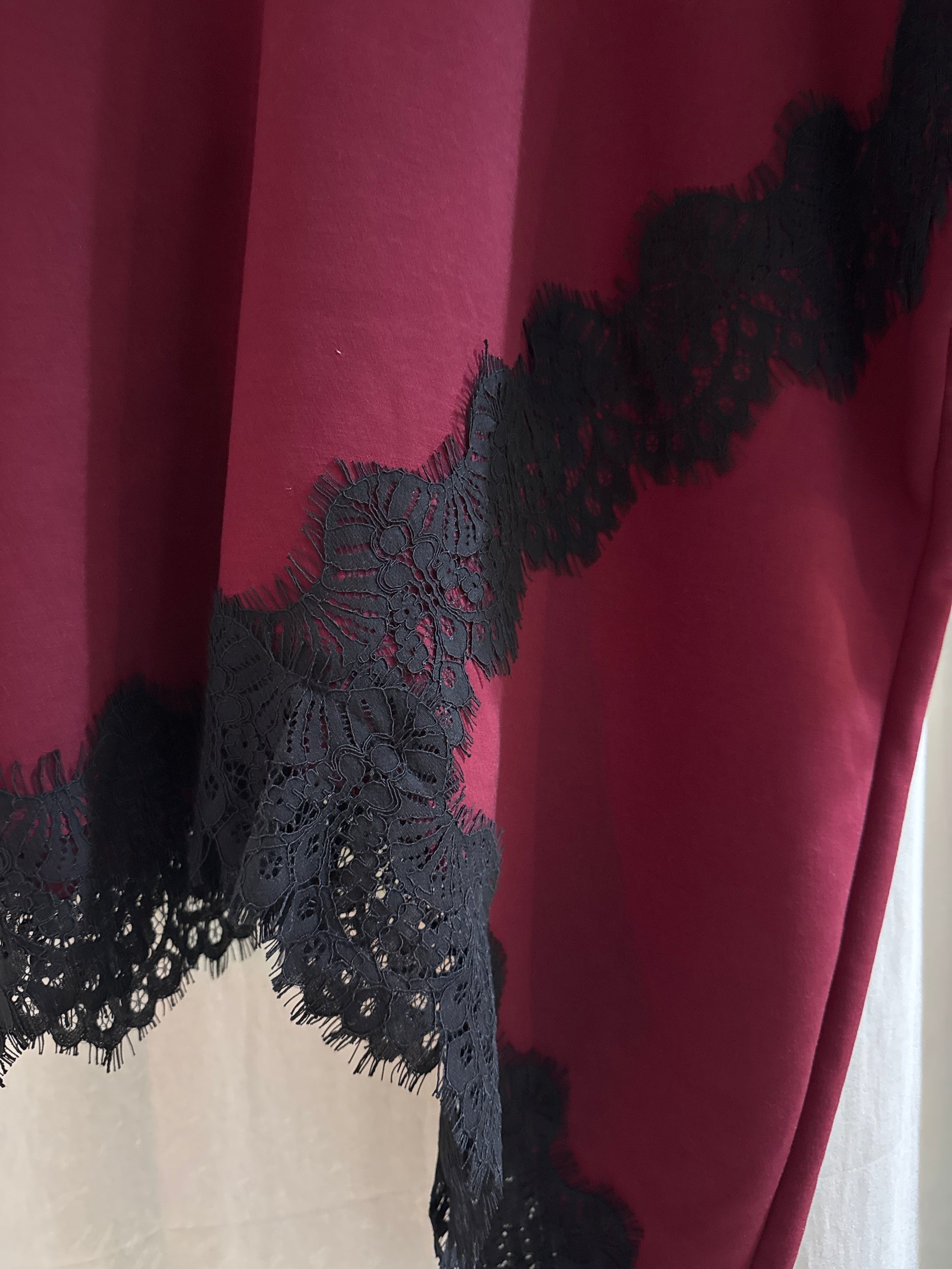 Maxi maglia asimmetrica con bordi in pizzo, in neoprene felpato