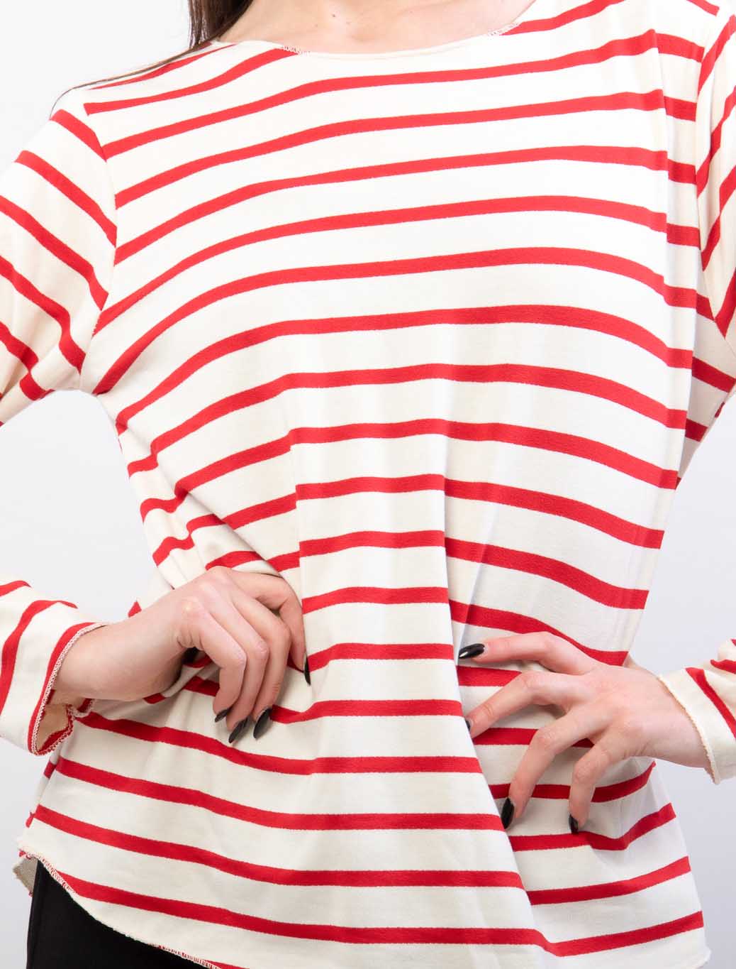 T shirt a righe con bordi a taglio vivo , in cotone garzato all’interno