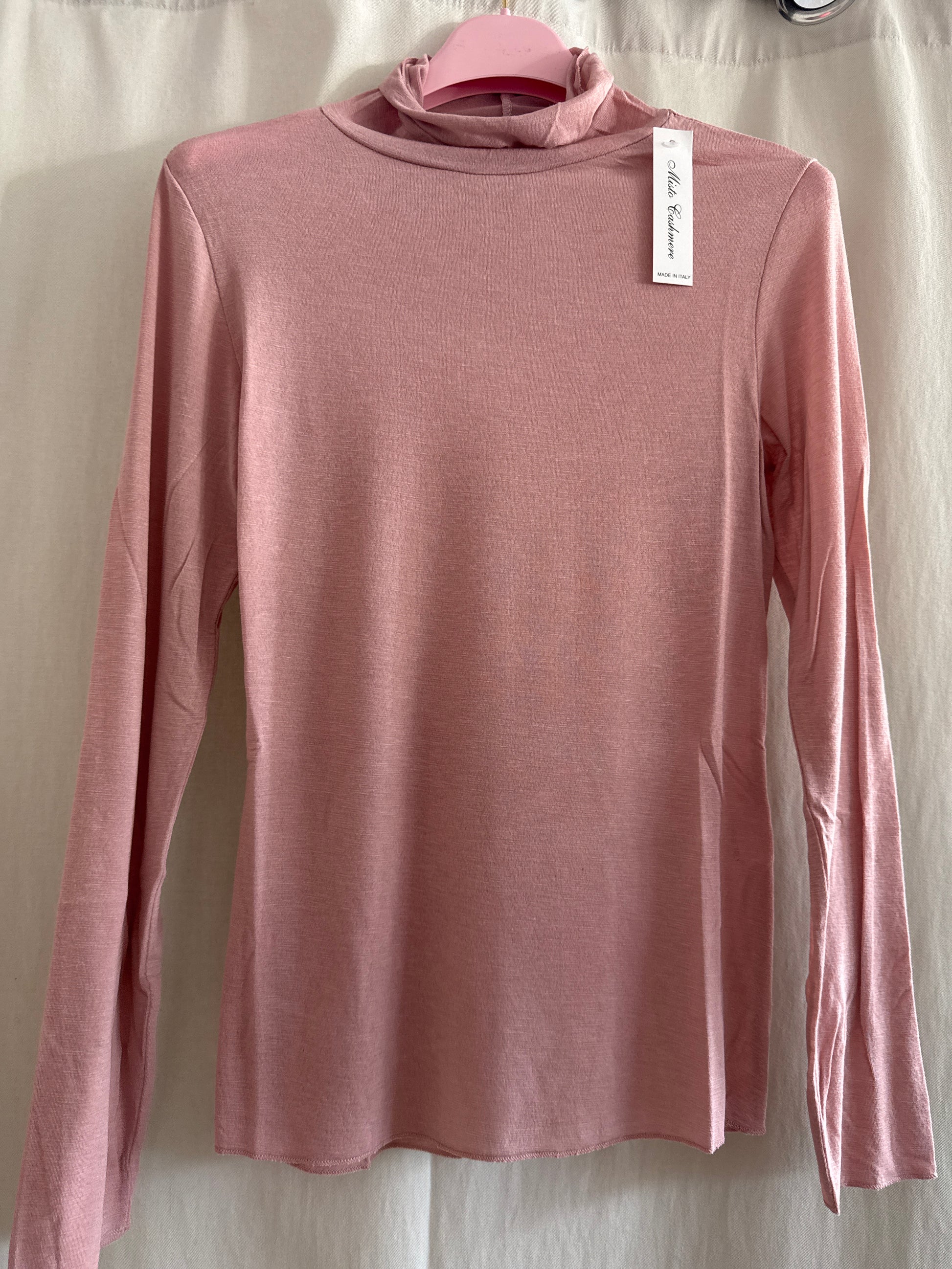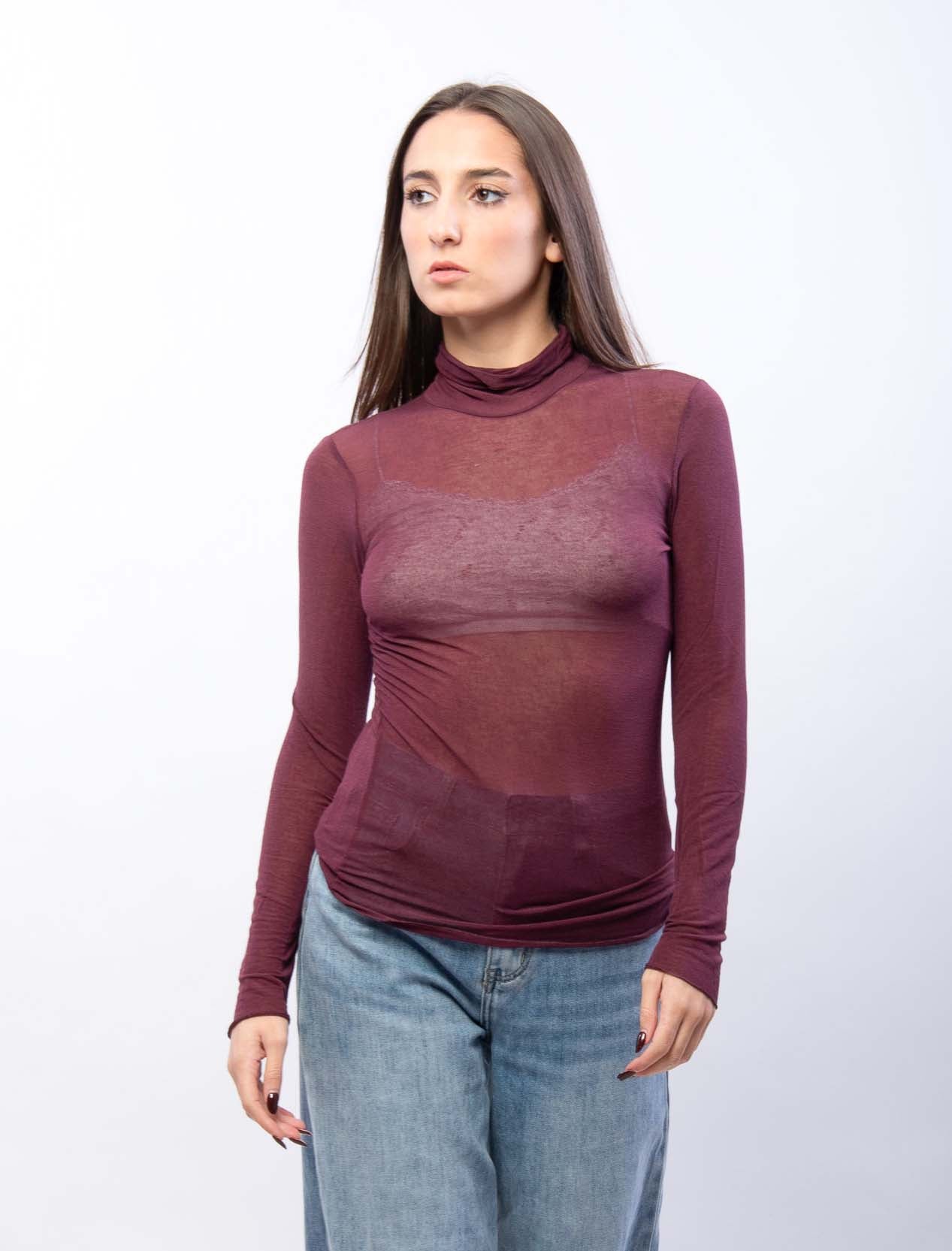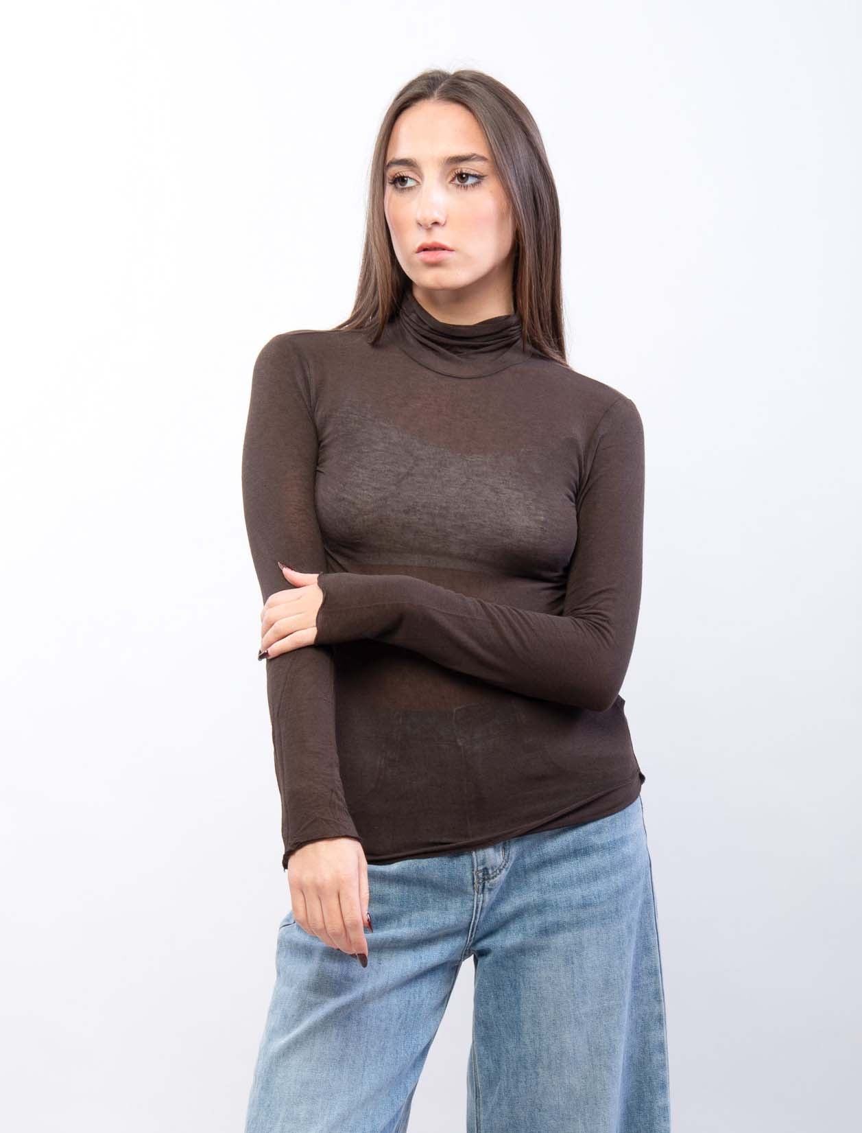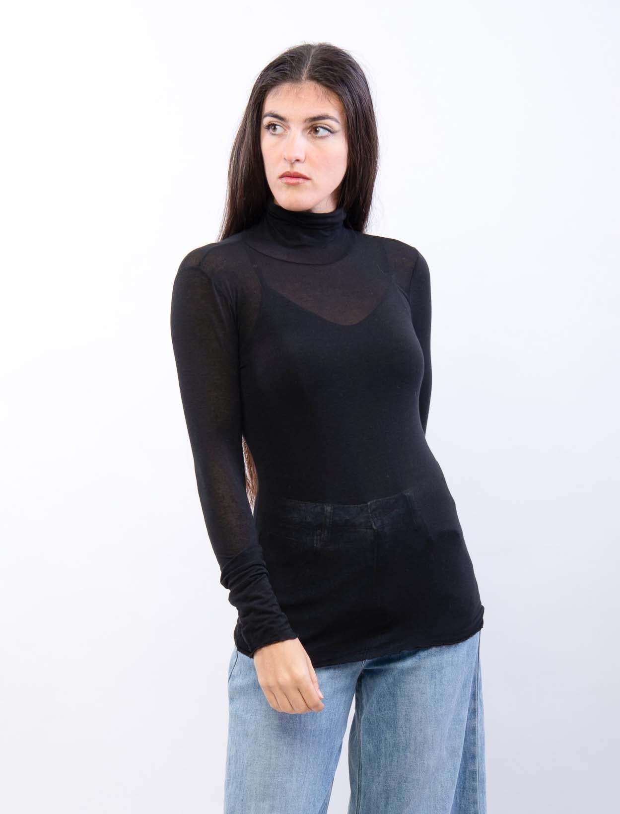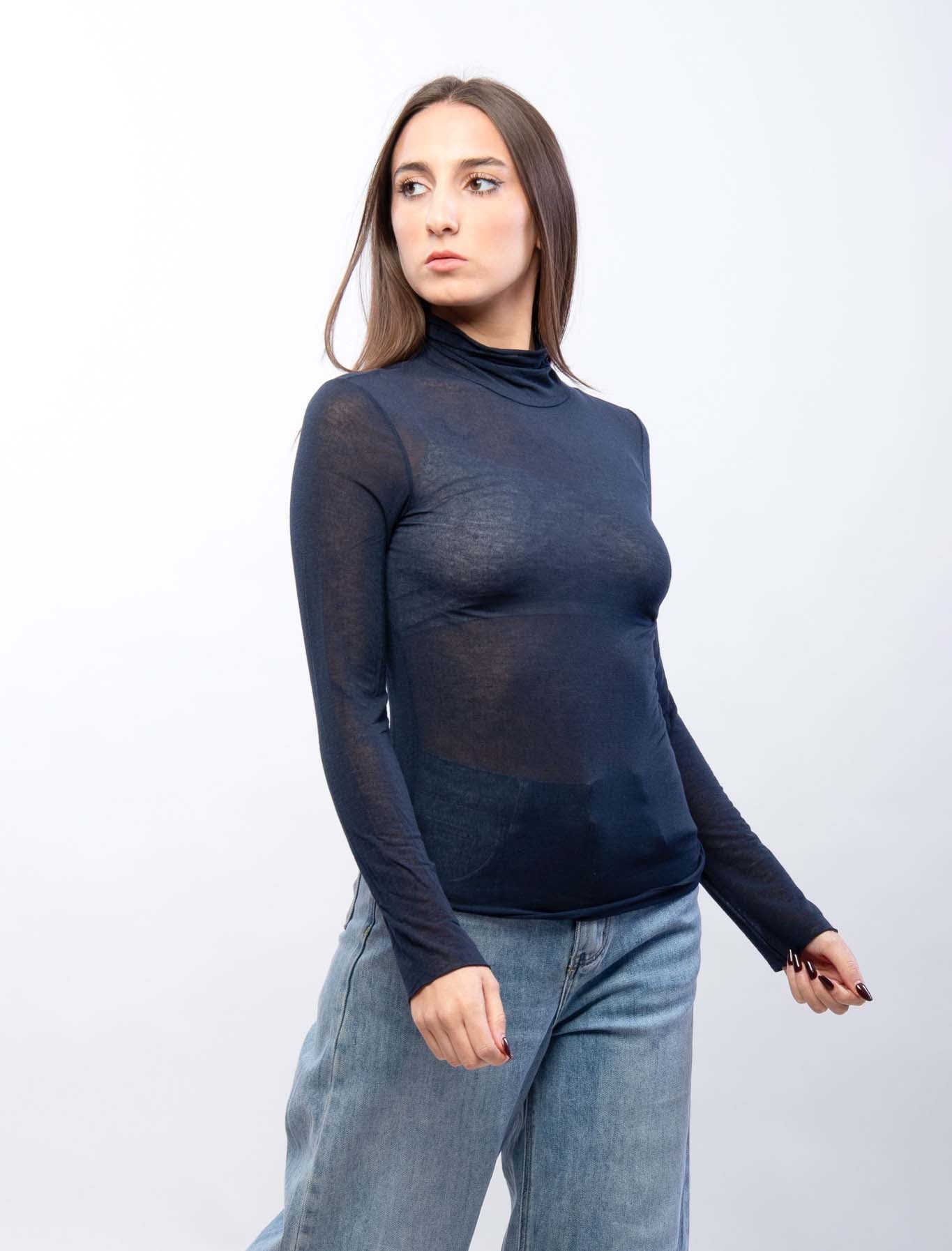 Maglietta sottile a dolcevita in misto cachemire, semi trasparente
