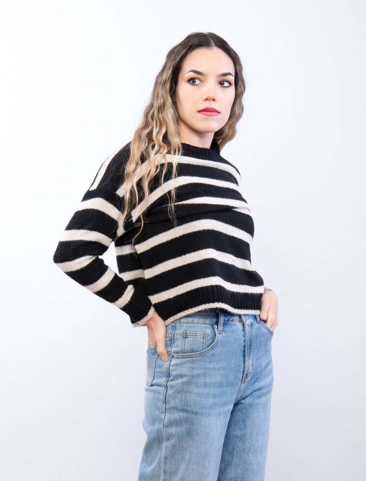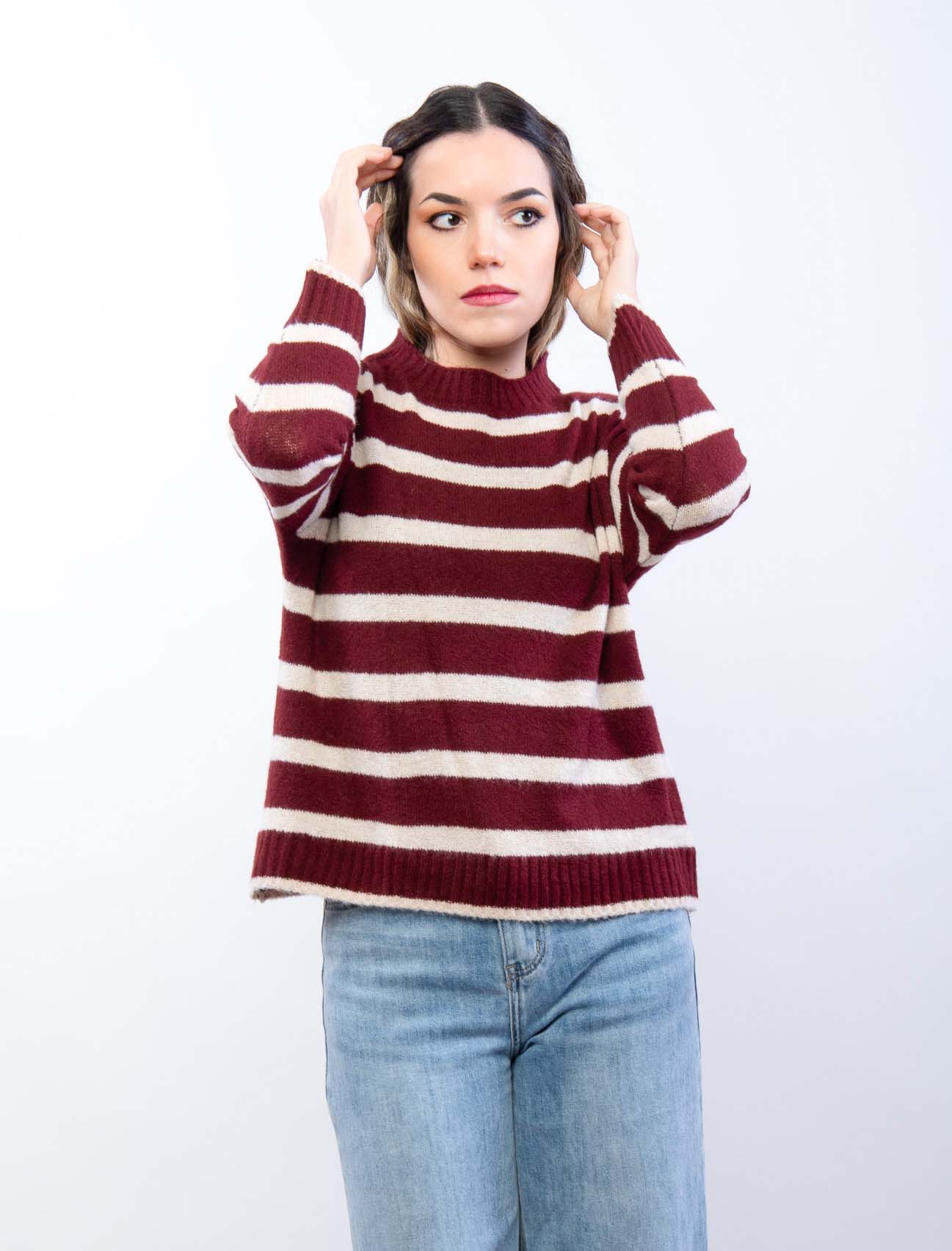 Maglia in misto lana leggera a righe, girocollo