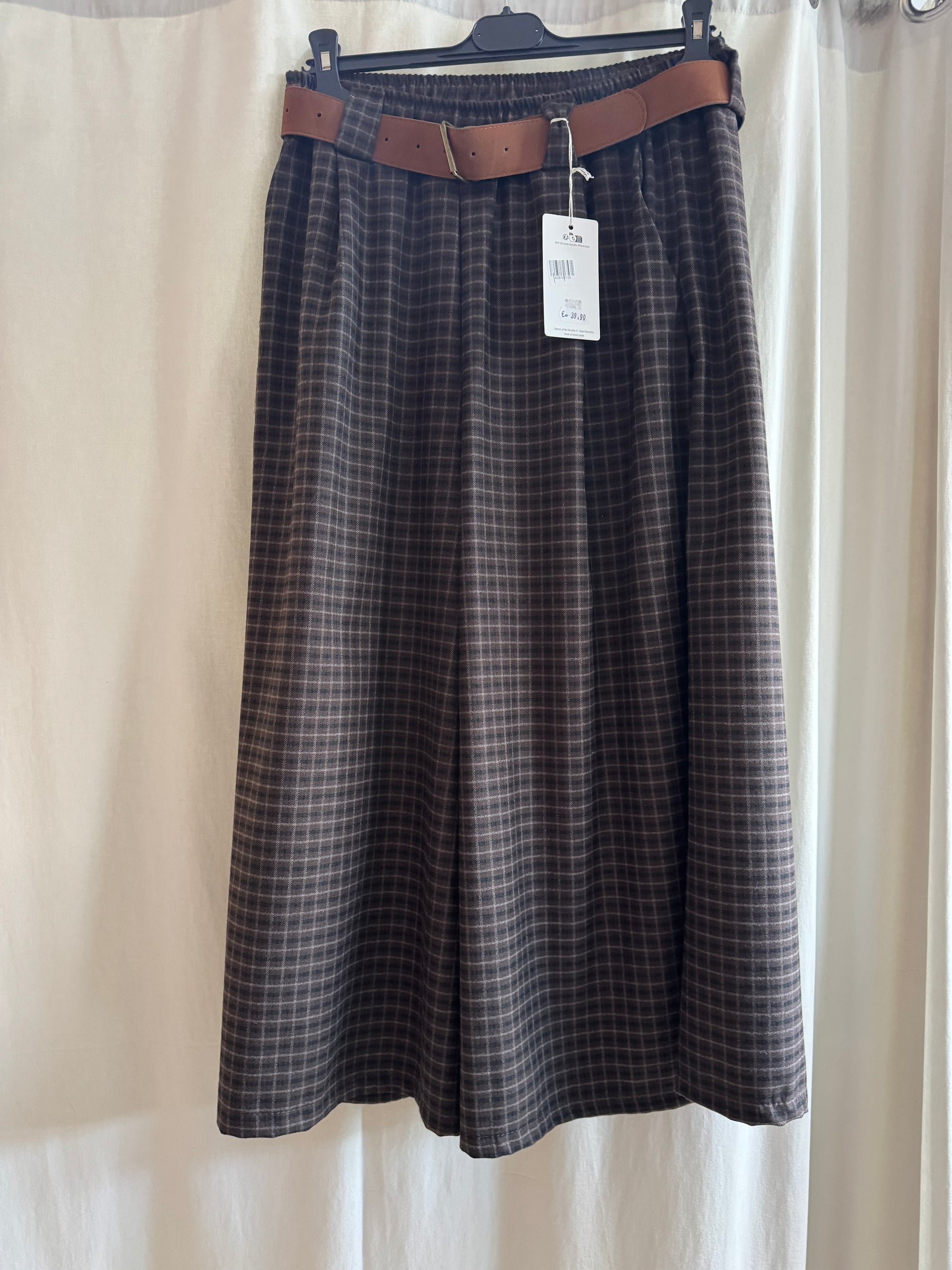 Panta palazzo in flanella con fantasia a quadretti e cintura inclusa