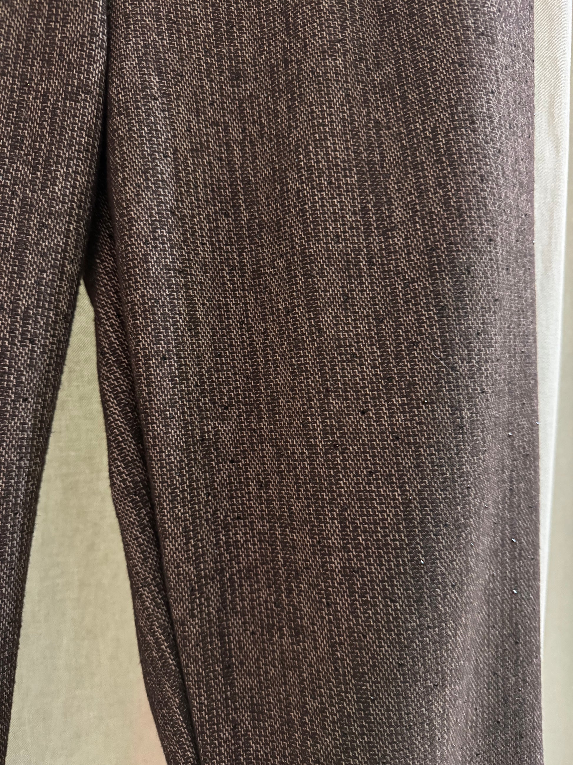 Pantalone a matita in tessuto caldo ed elastico con micro paillettes, pinces piatte anteriori, elastico in vita e cintura