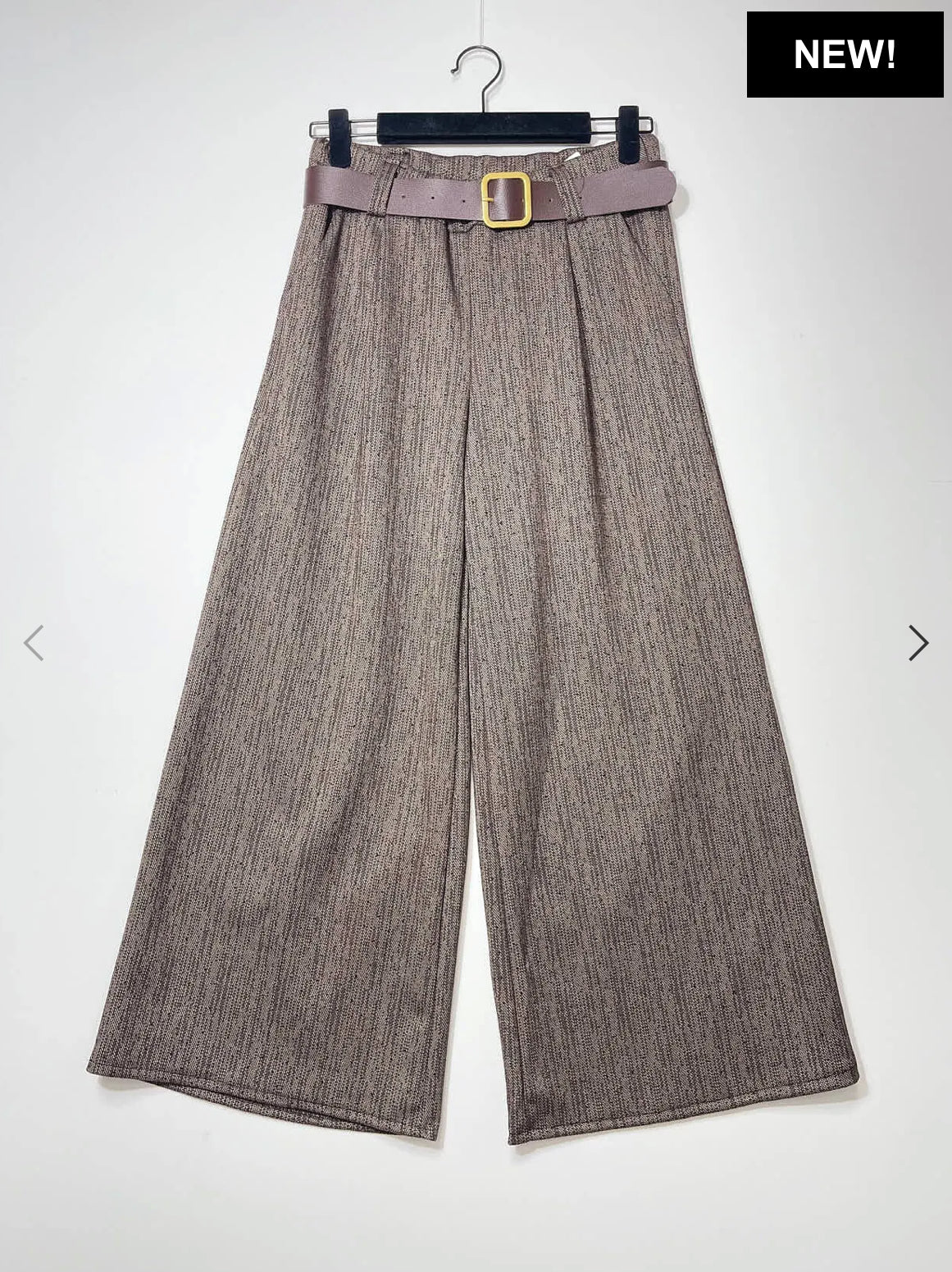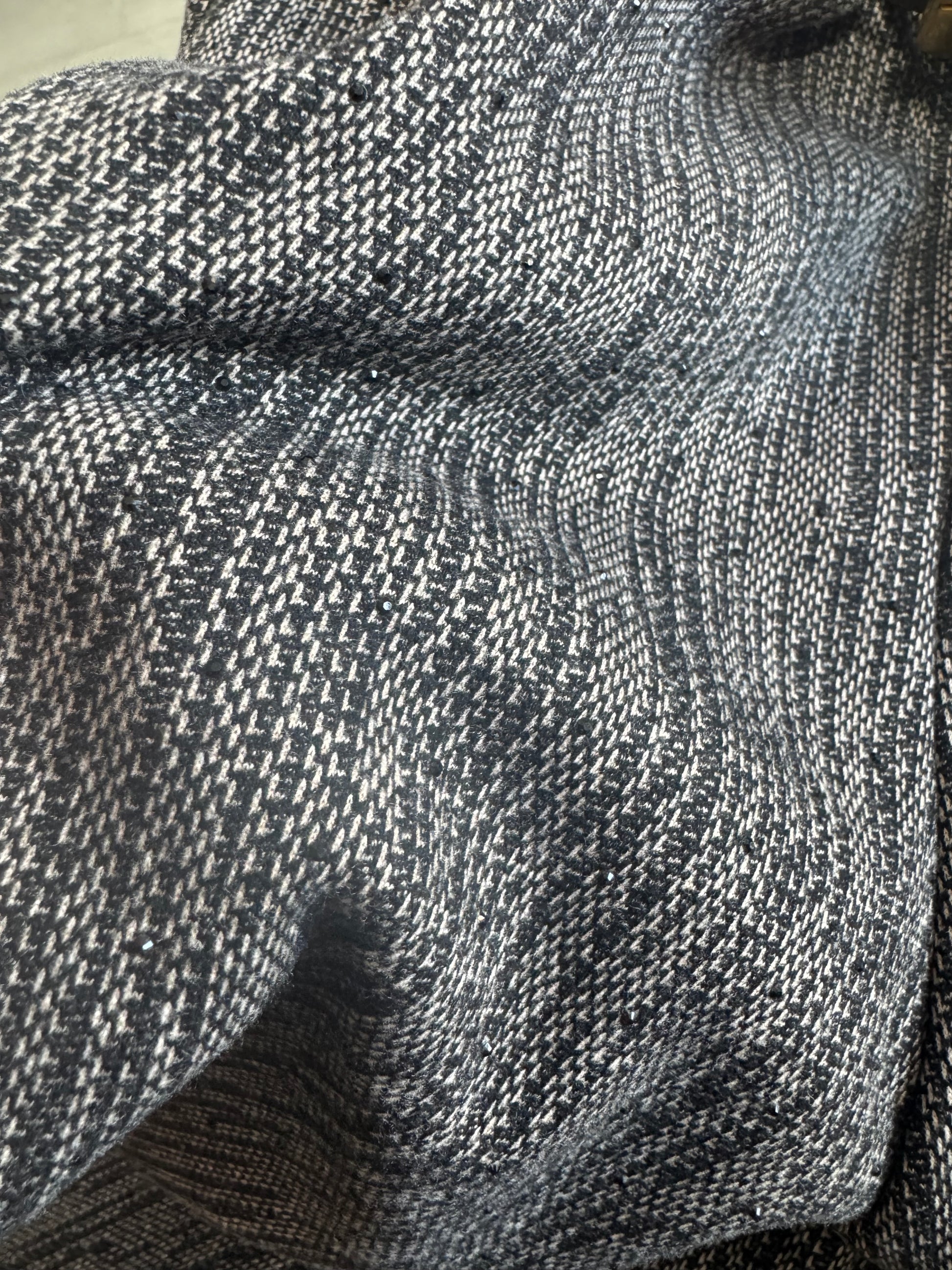Pantalone palazzo in flanella con micro brillantini neri ed elastico in vita