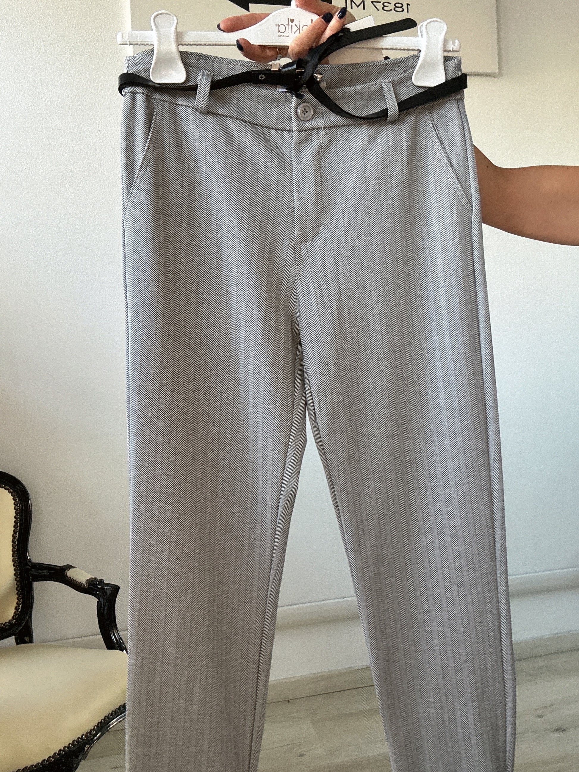 Pantalone slim fit elasticizzato in misto viscosa, chiusura con bottone e zip e cintura inclusa