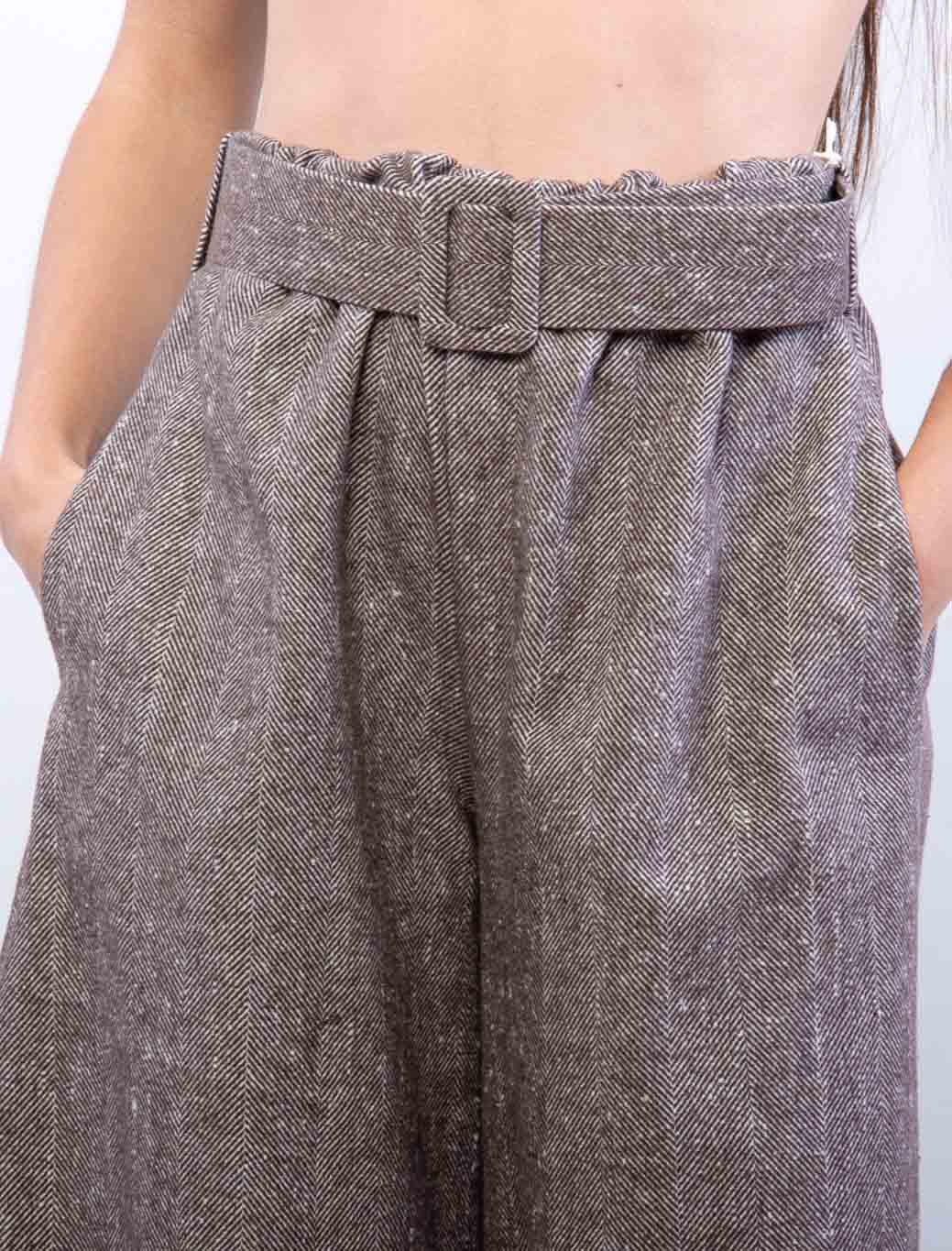 Pantalone a gamba ampia in flanella con bordi in pizzo, elastico posteriore e cintura inclusa