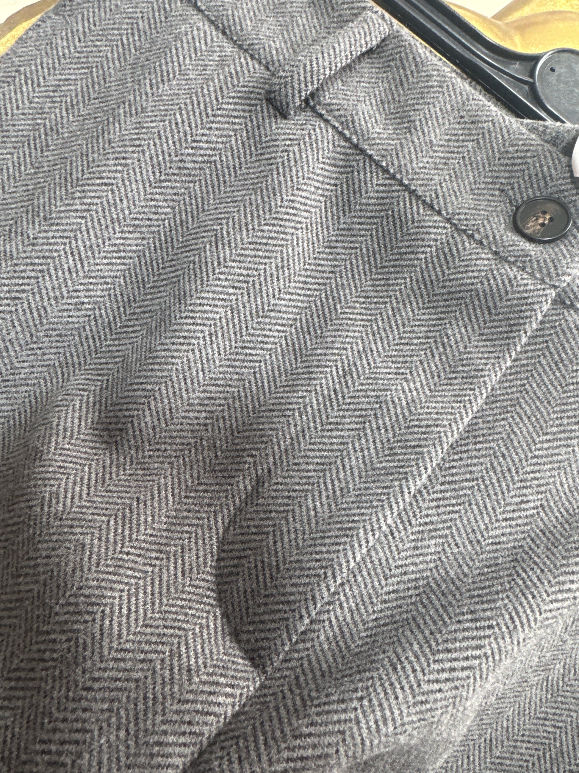 Short in flanella a fantasia spigata con profilo in pizzo e vita alta